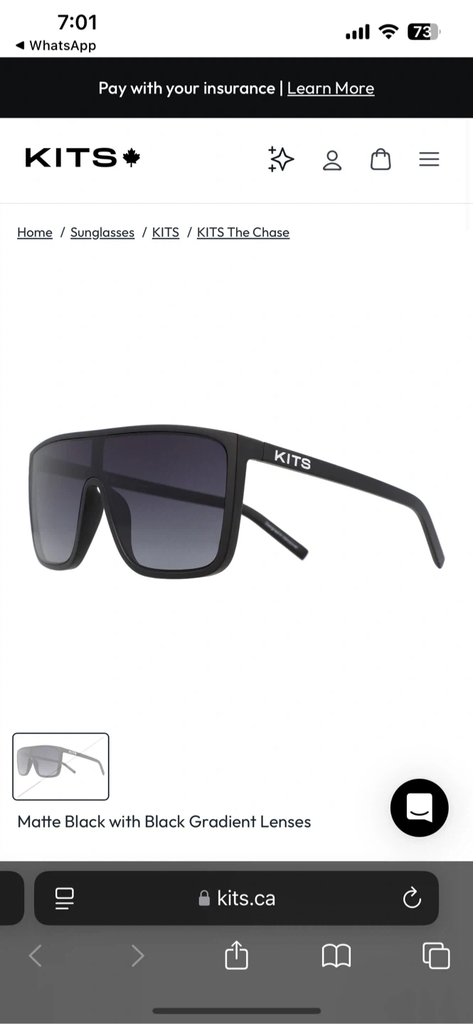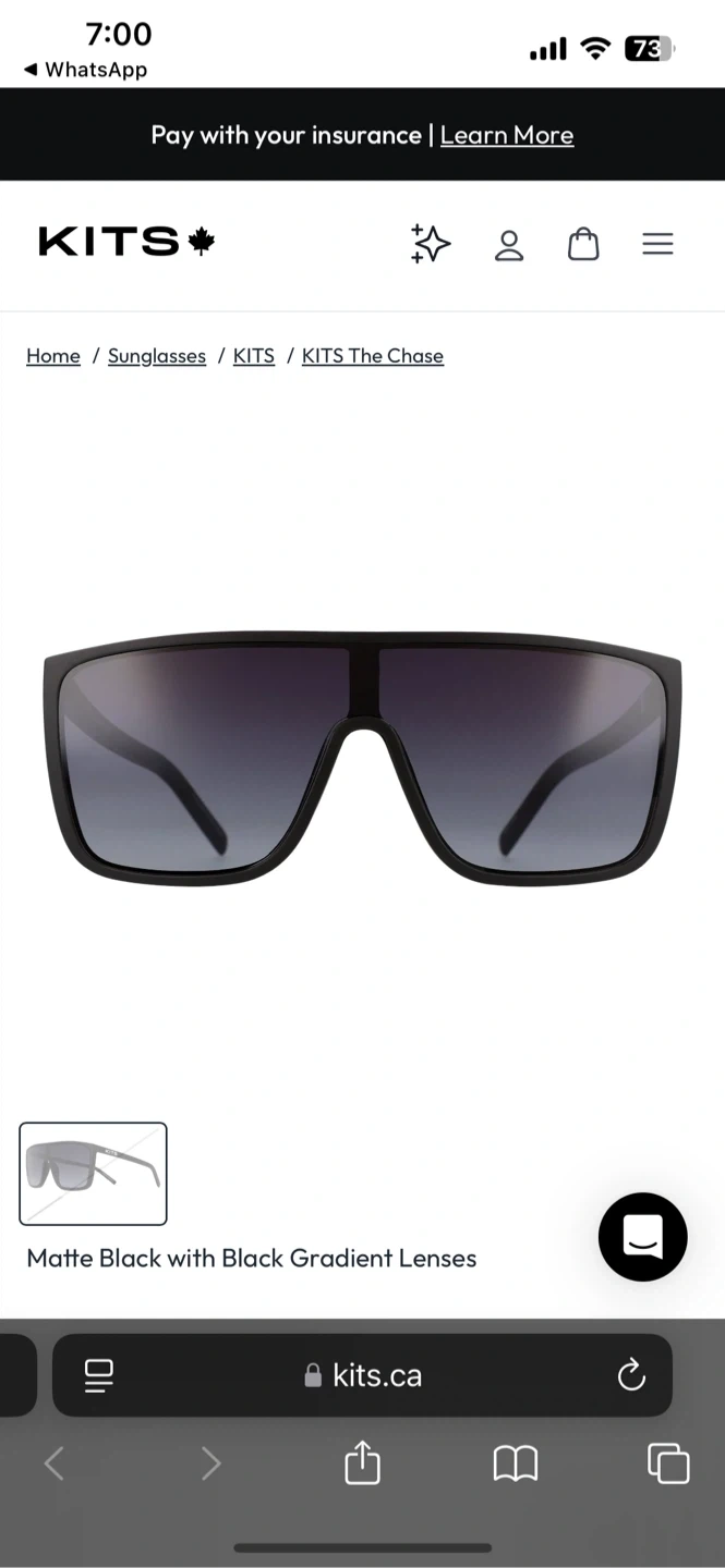 KITS The Chase sunglasses in matte black with black gradient lenses. These shades offer a bold, oversized shield style. Perfect for sunny days!