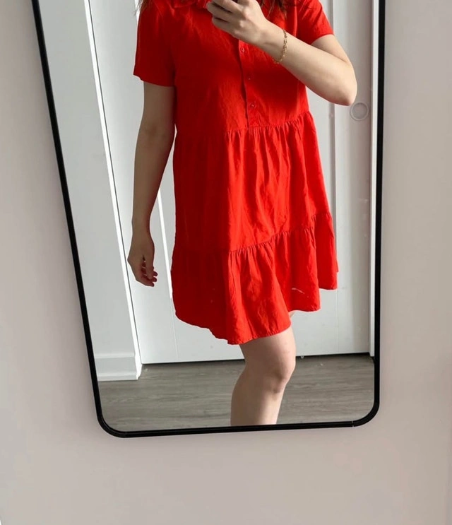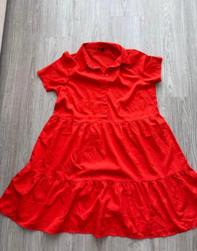Add a pop of colour to your wardrobe with this vibrant orange dress! The dress is in good condition, perfect for casual outings or a fun day at the beach. It has a relaxed fit and a cute, tiered design. If the ad is up, it's still available – so no need to ask! Feel free to message if you have any questions!