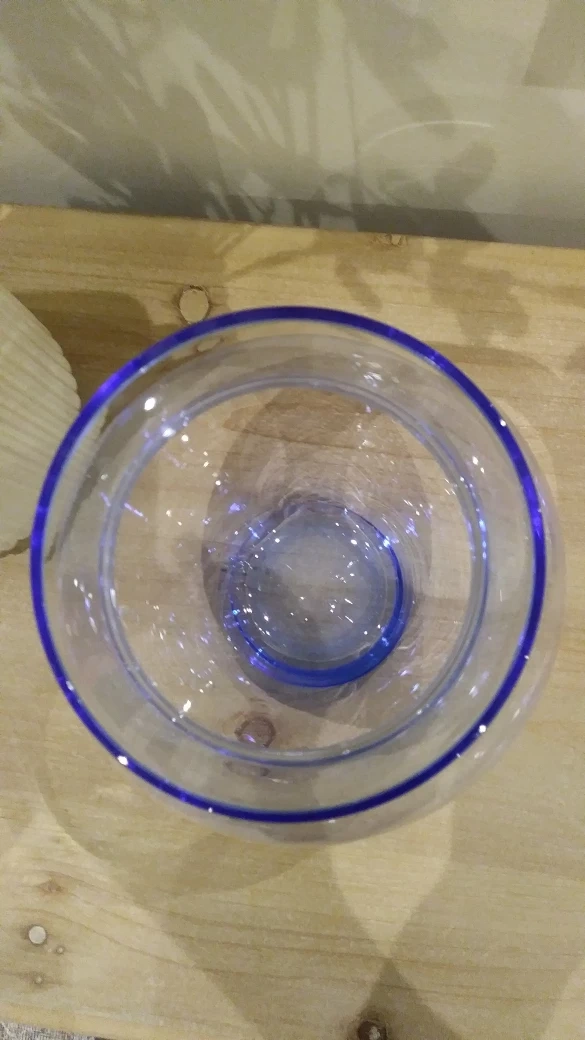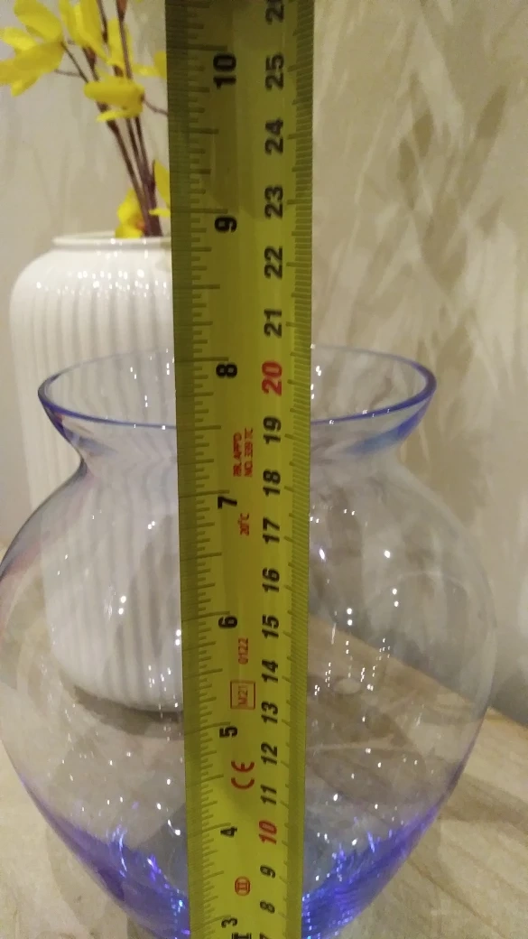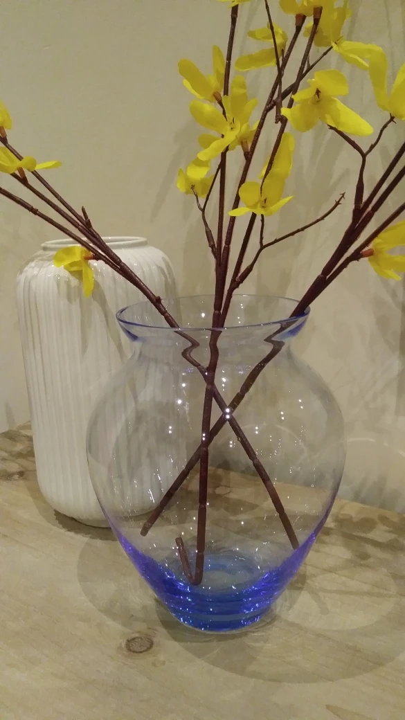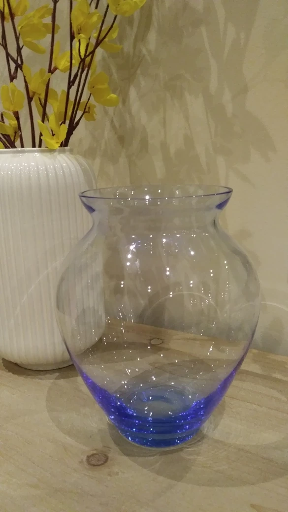 Hi, I am selling this pretty blue glassed vase that has a wonderful hour glass shape. Never used and I don't have the box that it came in. The height is about 7.5" and the opening is about 4" so that you can place your most precious flowers or branches in. Selling for $15.