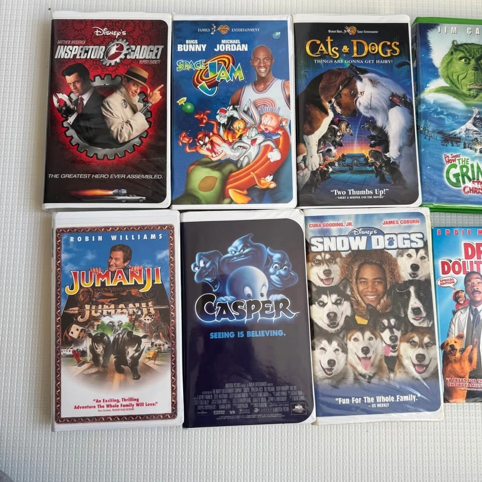 Awesome collection of 10 VHS movies! Has classics like Space Jam, The Grinch, Jumanji, Pretty Woman, Inspector Gadget, Casper, Dr. Dolittle 2, Cats & Dogs, and Snow Dogs. The Forrest Gump tape is still factory sealed. Others are in great shape. Asking $25 for the lot, or $3 each.