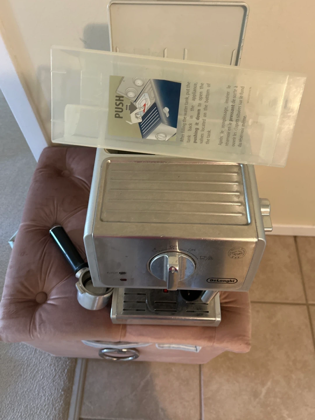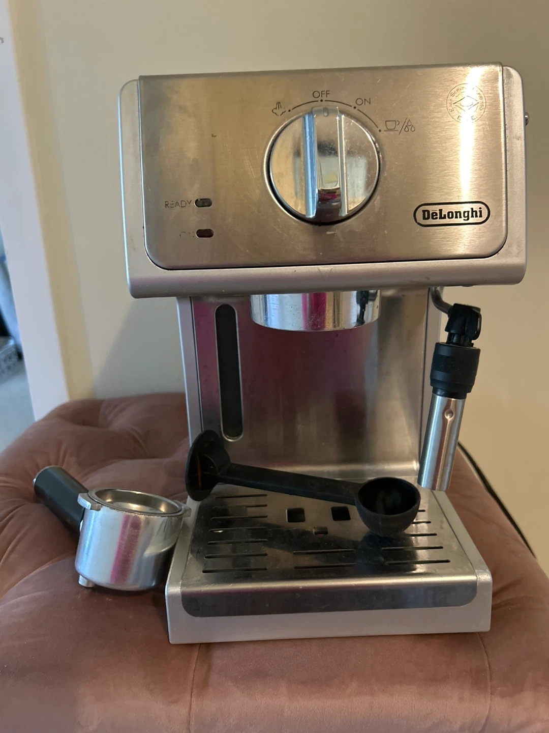 Buy & SellDeLonghi Espresso MachineDeLonghi Espresso Machine$63DeLonghi espresso machine in stainless steel. Includes portafilter and scoop. Makes a great cup of coffee!ConditionLike newBrandDeLonghiWHERE TO MEET6 avenueView MapSELLERNancyUptown100 reviews0 chats·0 favorites·7 viewsSEND CHAT TO SELLERHi Nancy! I’m interested in your listing.Hi Nancy! I’m interested in your listing.Get the Karrot app to chatSign In to chat