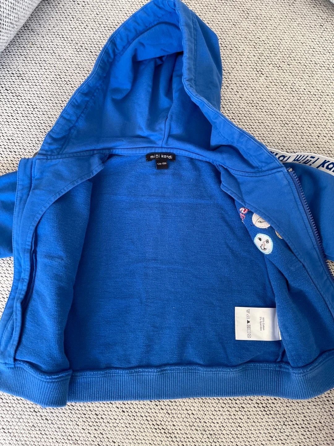 Mini Kardi Blue Hoodie with Happy Smile Embroidery