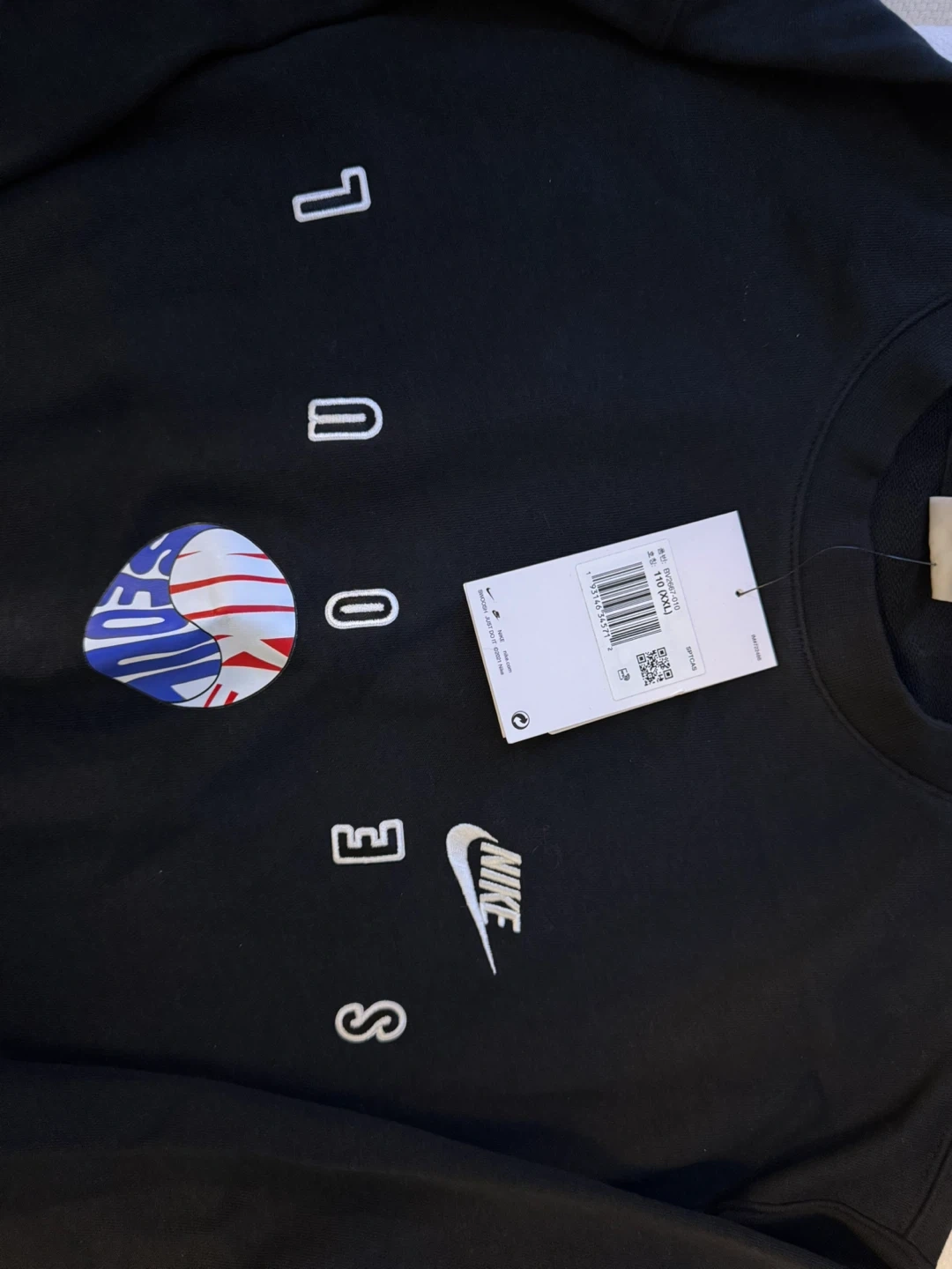 Selling a Nike 100ES crewneck sweatshirt in black. It's in new condition and ready for a new owner. The design features the Nike logo and custom unique graphic. Perfect for casual wear! Was made and brought from Korea and never worn.