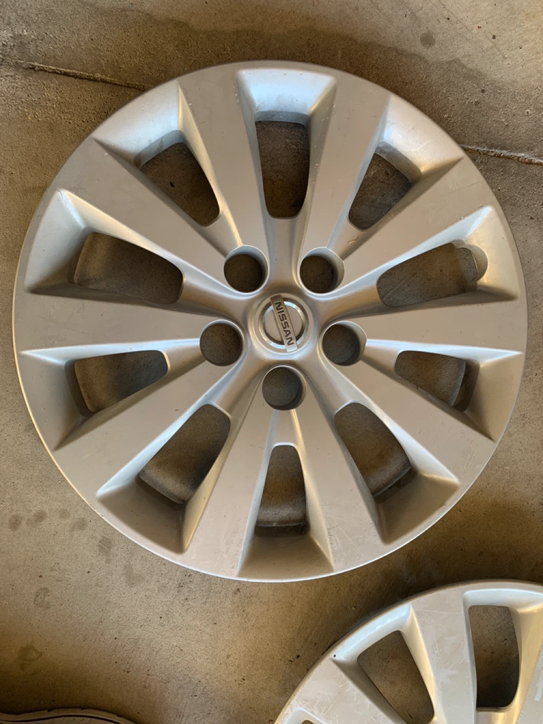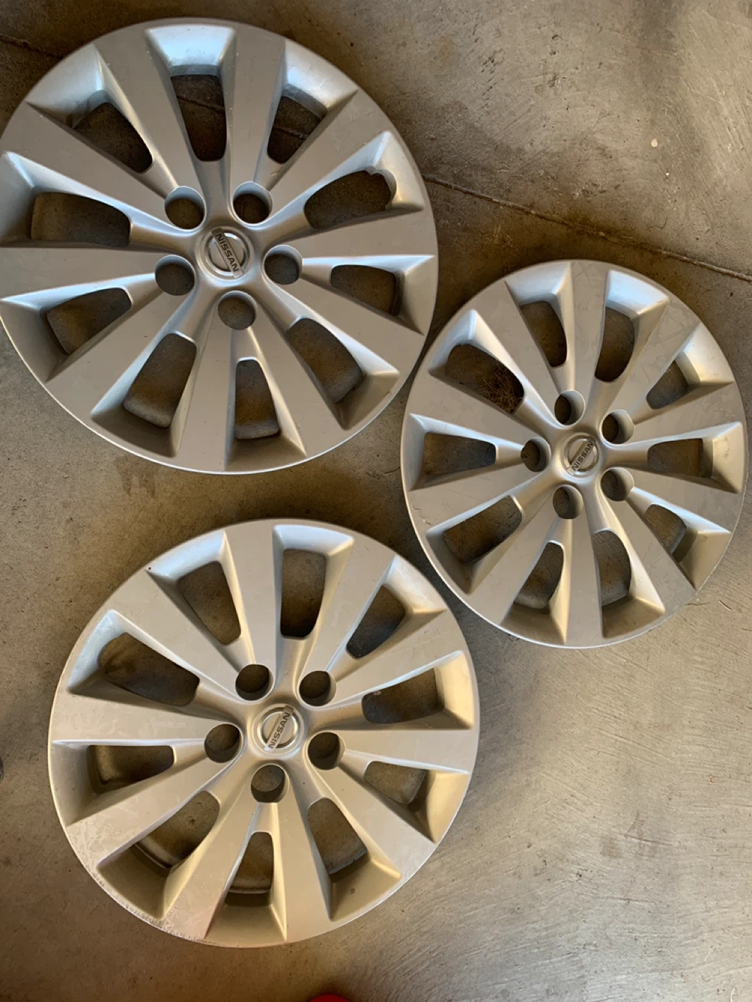 Selling a set of three silver Nissan 15”hubcaps. They're in used condition, showing some minor scuffs from normal wear. These are direct replacements for many Nissan models was installed on Sentra