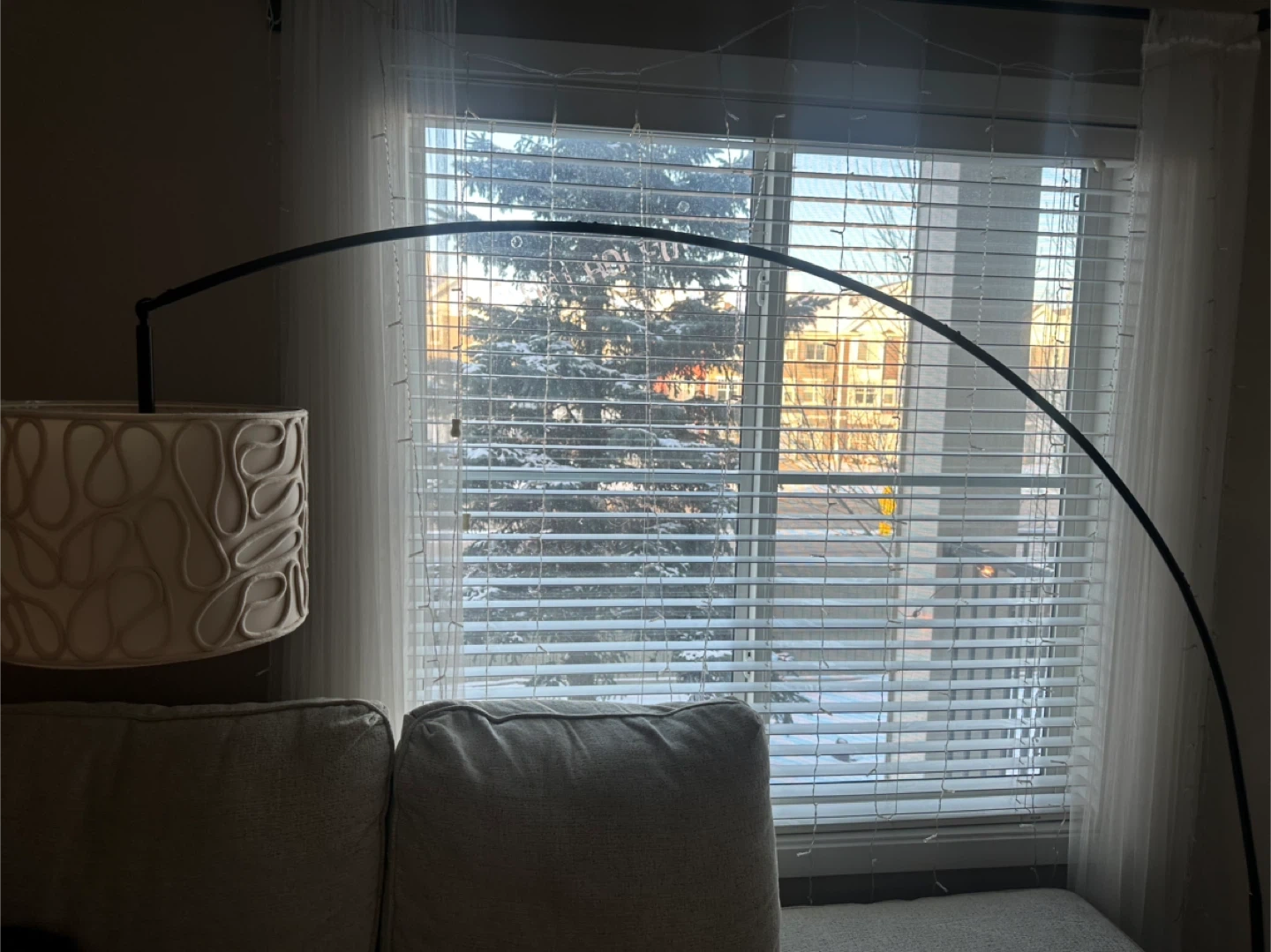 It comes with two lamp shades that you can change as per your choice. Beige and white