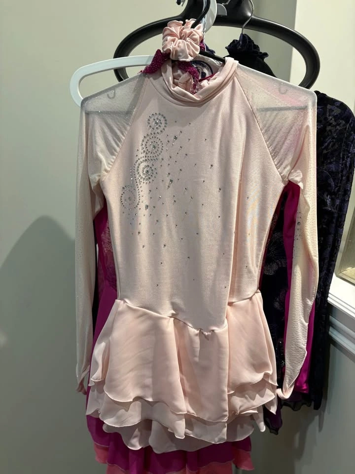 Beautiful figure skating dresses, worn once, in great condition like new. Free tights included. Perfect for skating practice or competitions. Very comfortable stretch fabric and elegant design. Sizes: adult Small and Medium (please see tag in photos). Pickup in Toronto or King City.