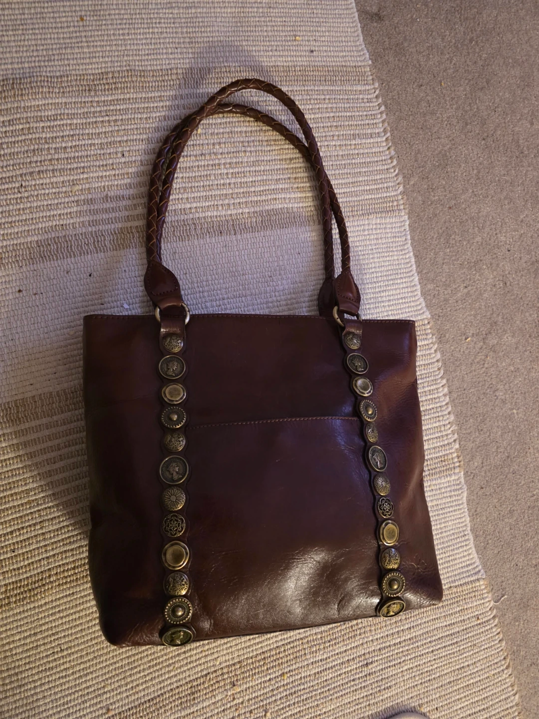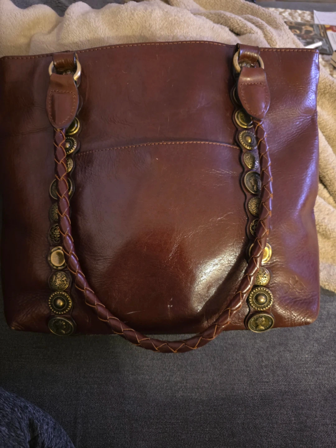 Patricia Nash Renaissance Coin Collection, full grain leather bag with vintage coin pattern .