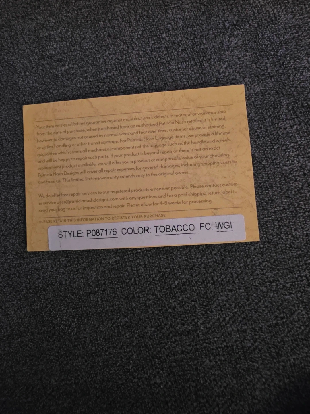 Color- Tobacco ( as mentioned in original receipt)