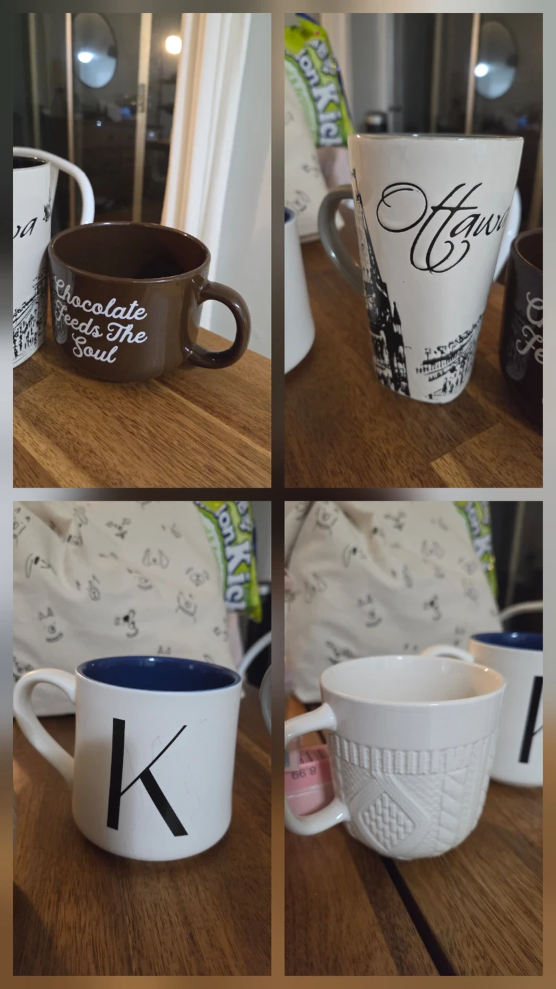 All of these 4 mugs are brand new, and ready to be used for your breakfast.. Take them all for the price.