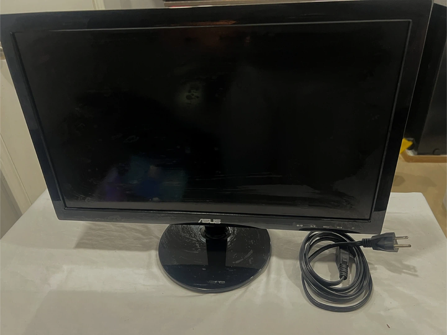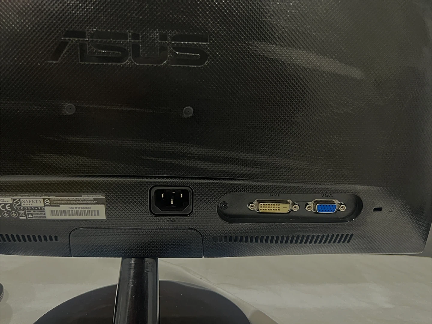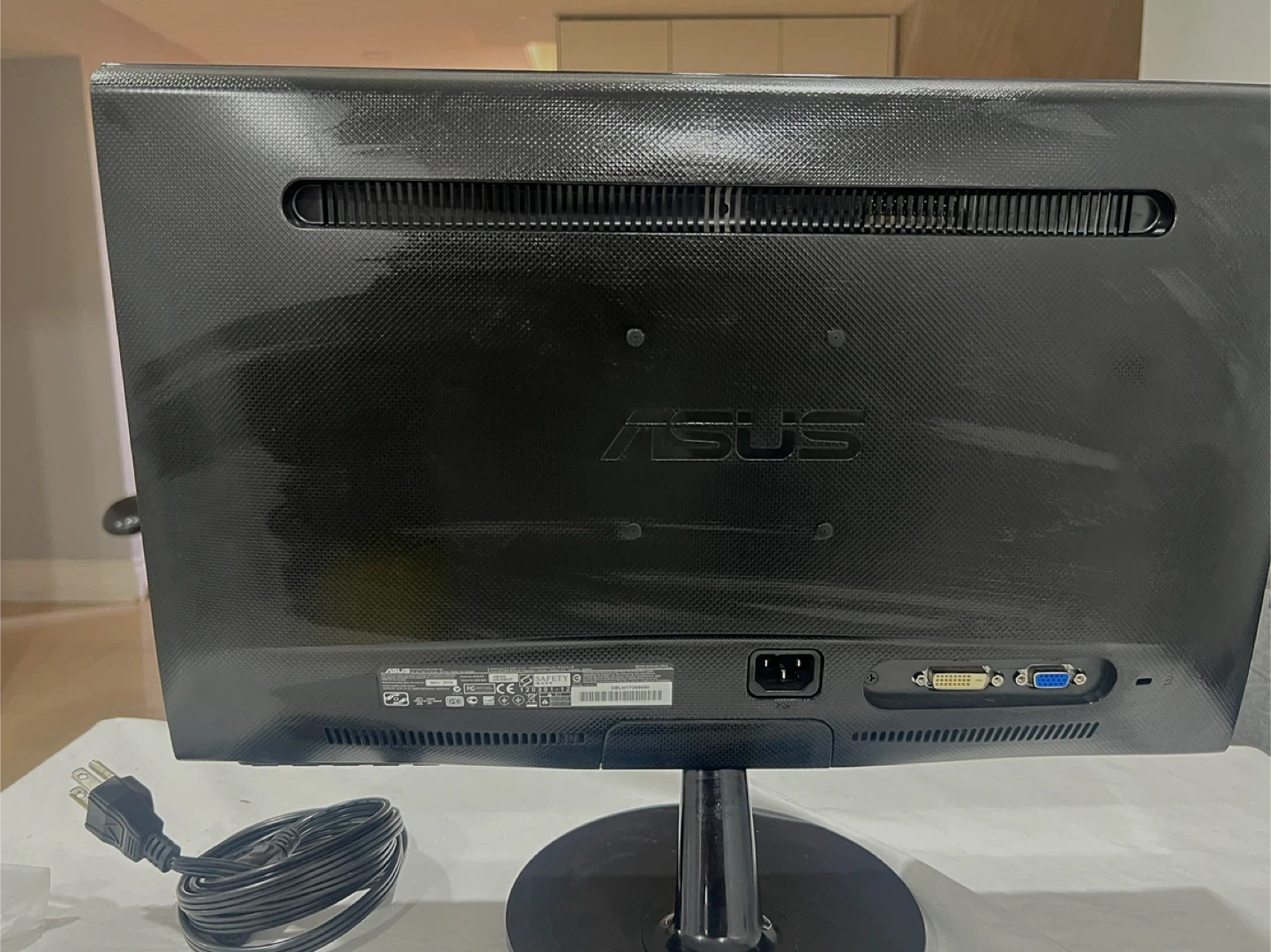 This is an ASUS 20-inch computer monitor. It's black and comes with a power cord. The monitor has DVI and VGA ports.