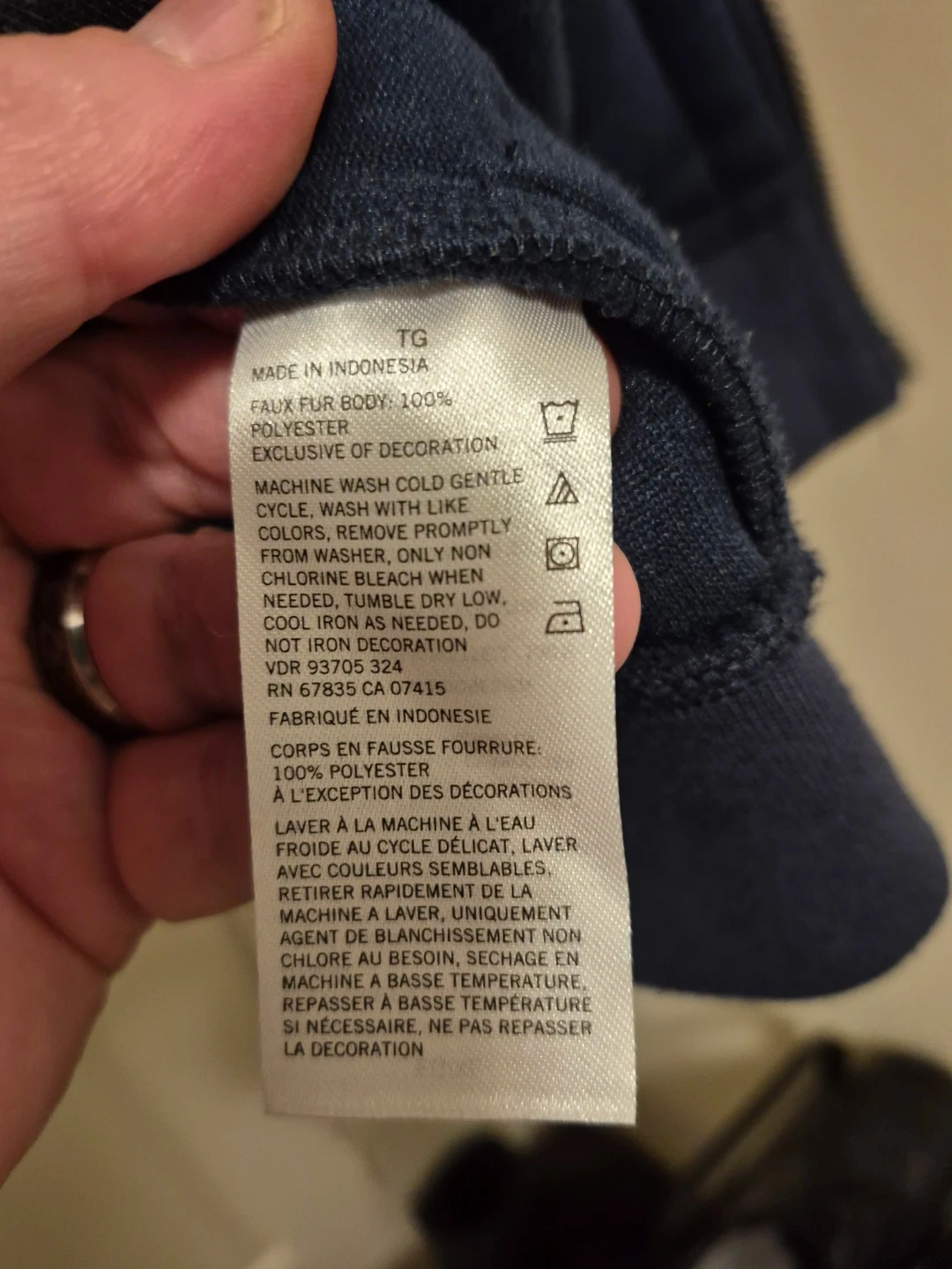 Cozy Nautica fleece bomber jacket in XL. It's a navy blue body with bright red sleeves and a striped collar. Features a full zip front and two side pockets.