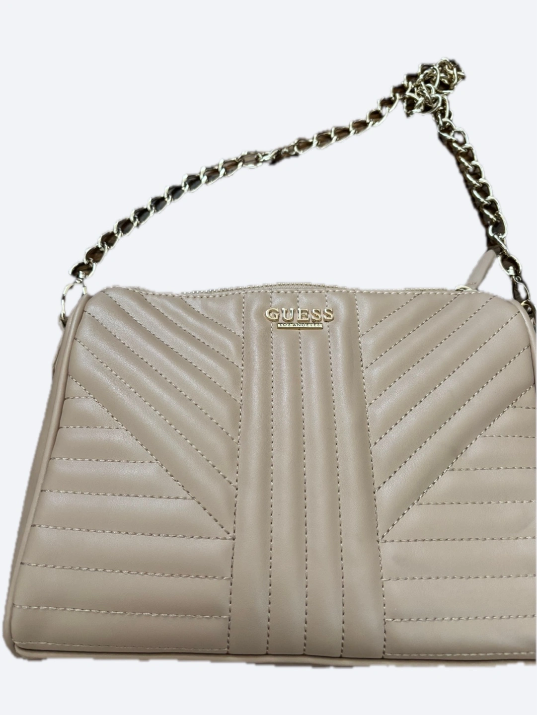 Selling a Guess handbag in a lovely beige colour. It features a chain strap and a stylish quilted design. Perfect for adding a touch of elegance to any outfit!