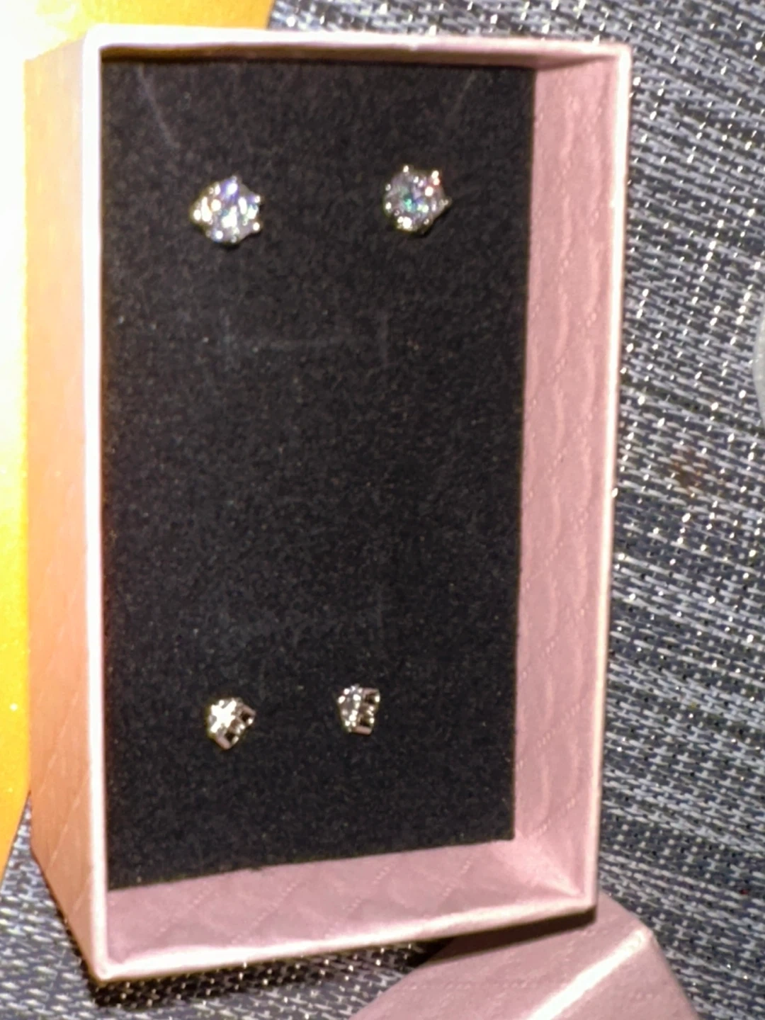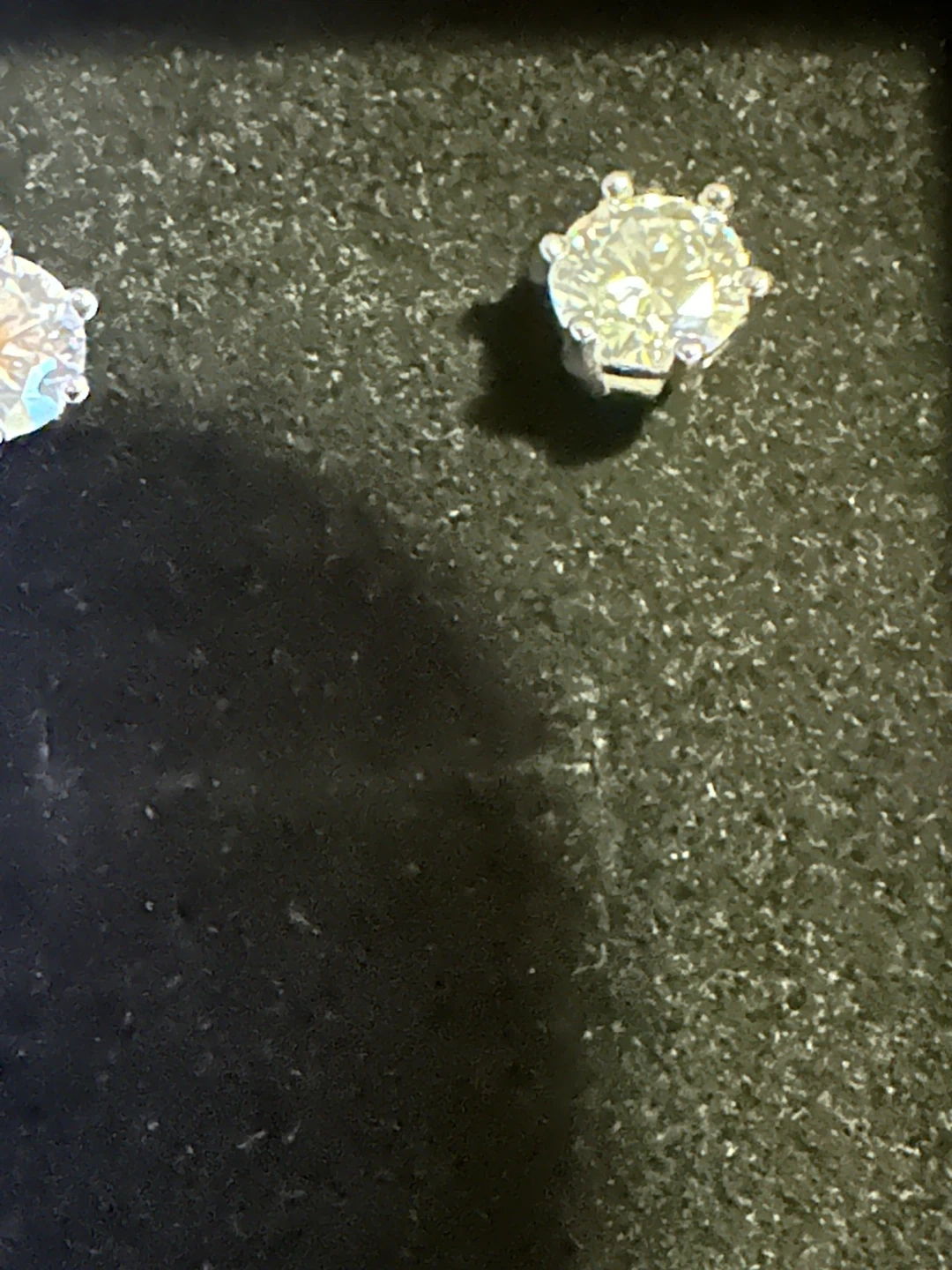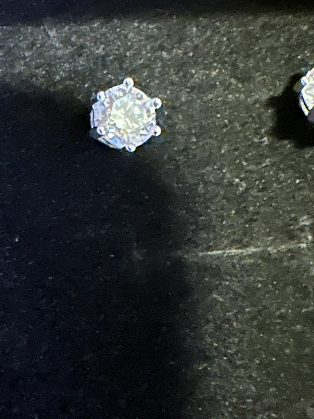 Selling a pair of diamond stud earrings. They come in a box and are in great condition! passed diamond tester test can bring diamond tester for proof.