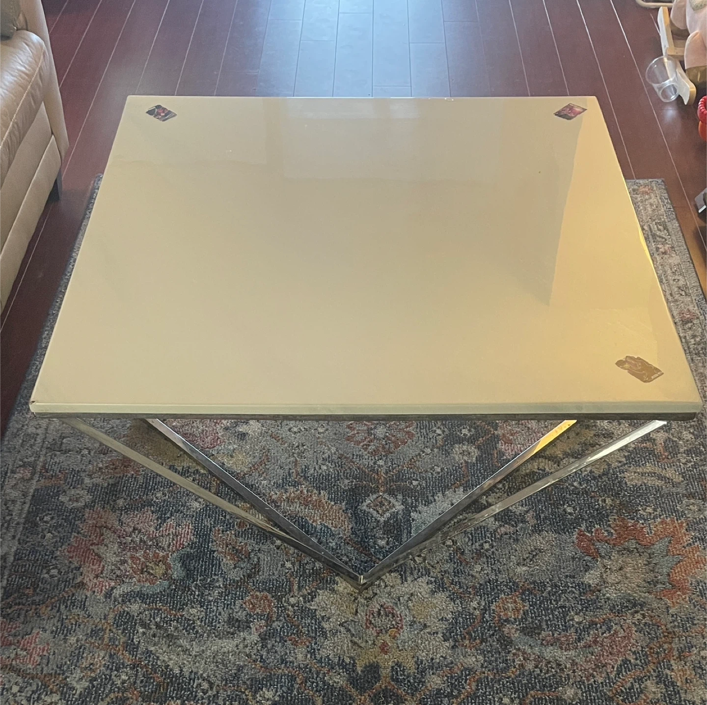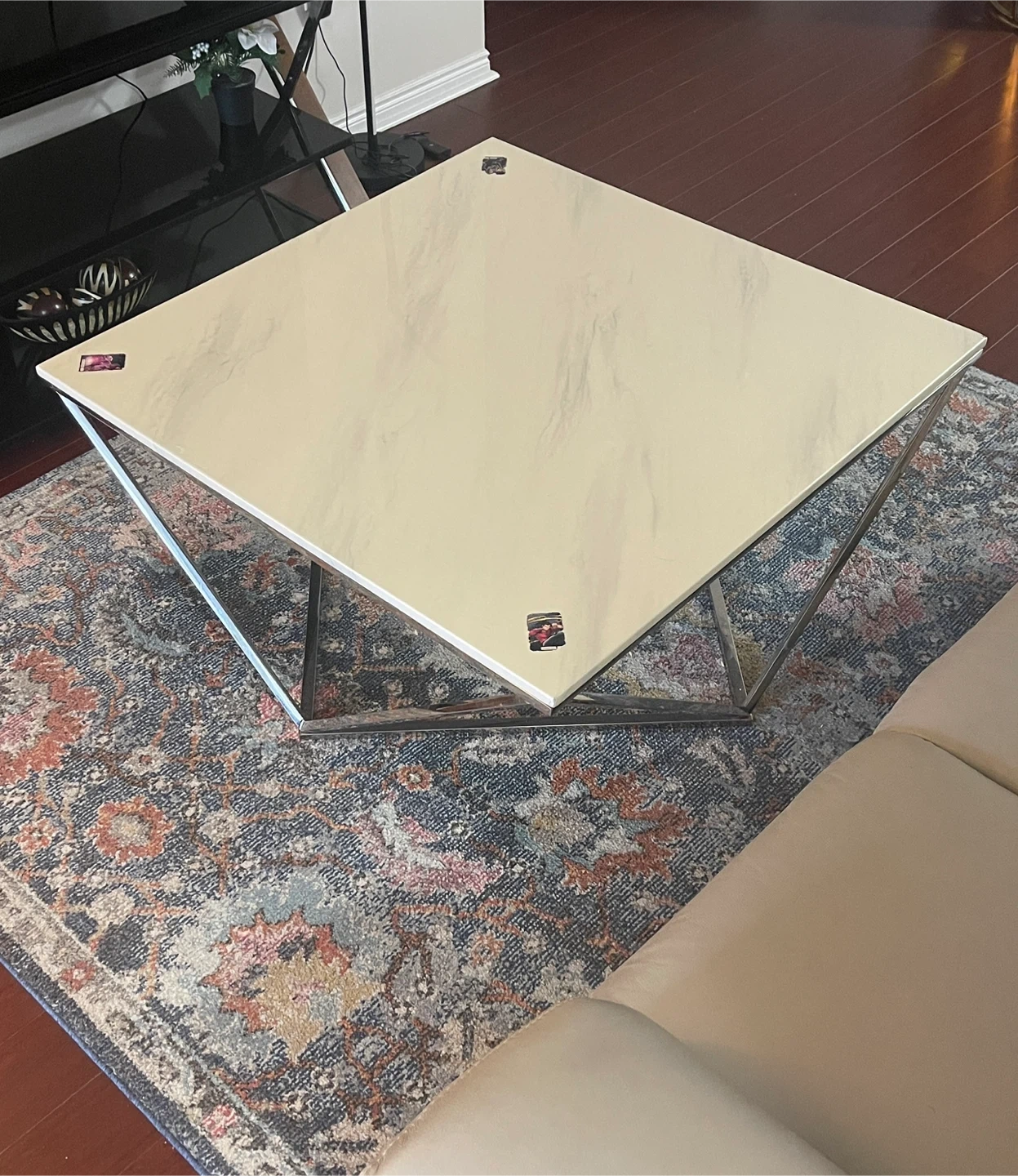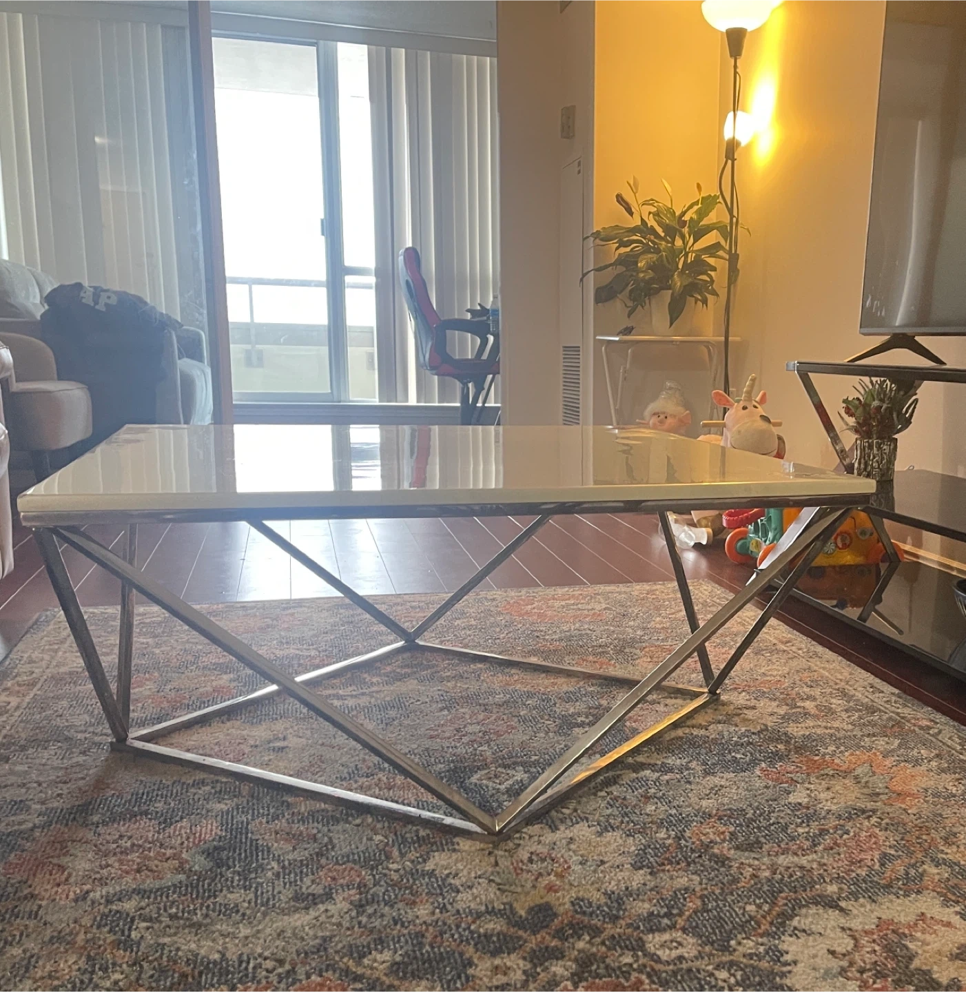 Coffee table (39"), the coffee table is too big for my current space so I am selling it. The marble top is removable and quite heavy, so two people will be needed to move it.