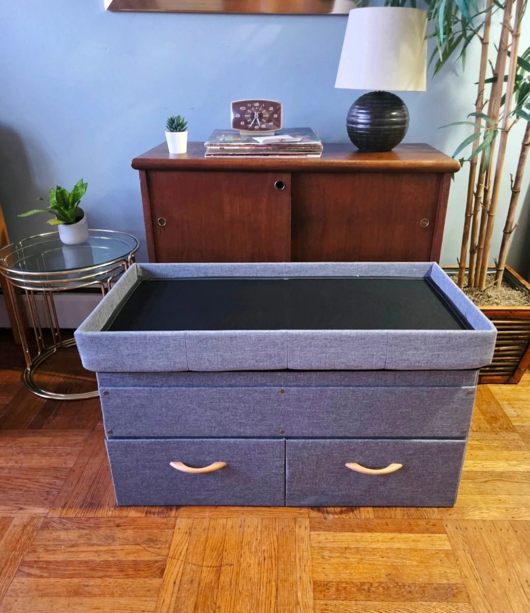 Tags. Hallway entryway mudroom storage seating bench ottoman coffee table footrest modern Contemporary organizer shoes kids room tuft tufted