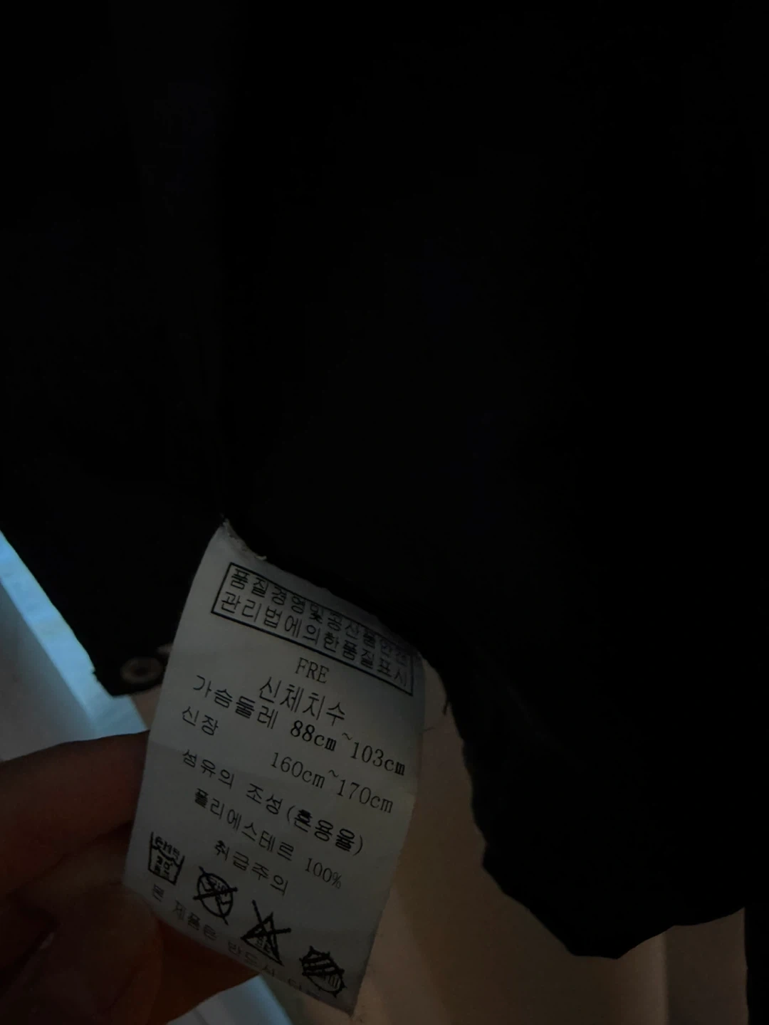 Selling a black jacket that's made of 100% polyester. It has a cool design with white graphics on the front and back.