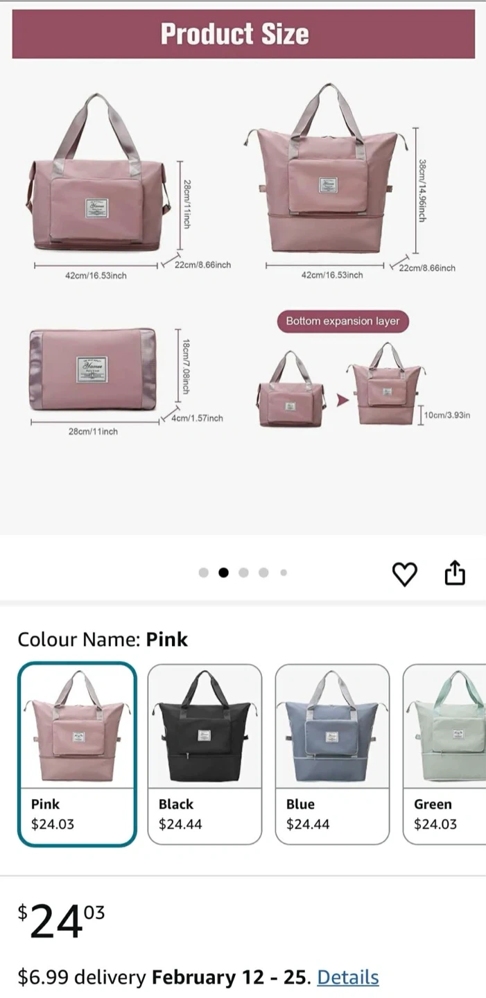 Pink Foldable Travel Duffel Bag