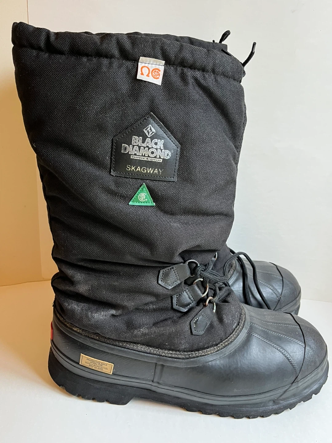 Black Diamond Skagway winter steel toe work boots. Insulated with a felt lining. CSA certified steel toe, puncture resistant sole, electrical resistant. Made in Canada. Size 13.