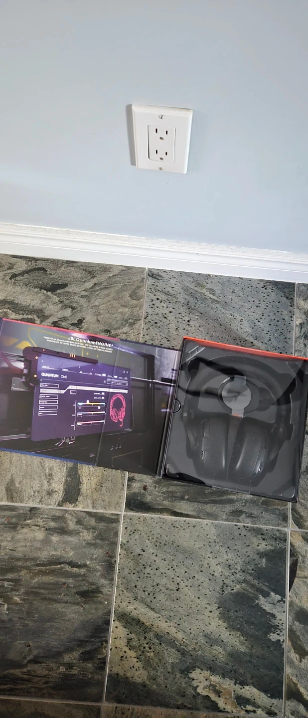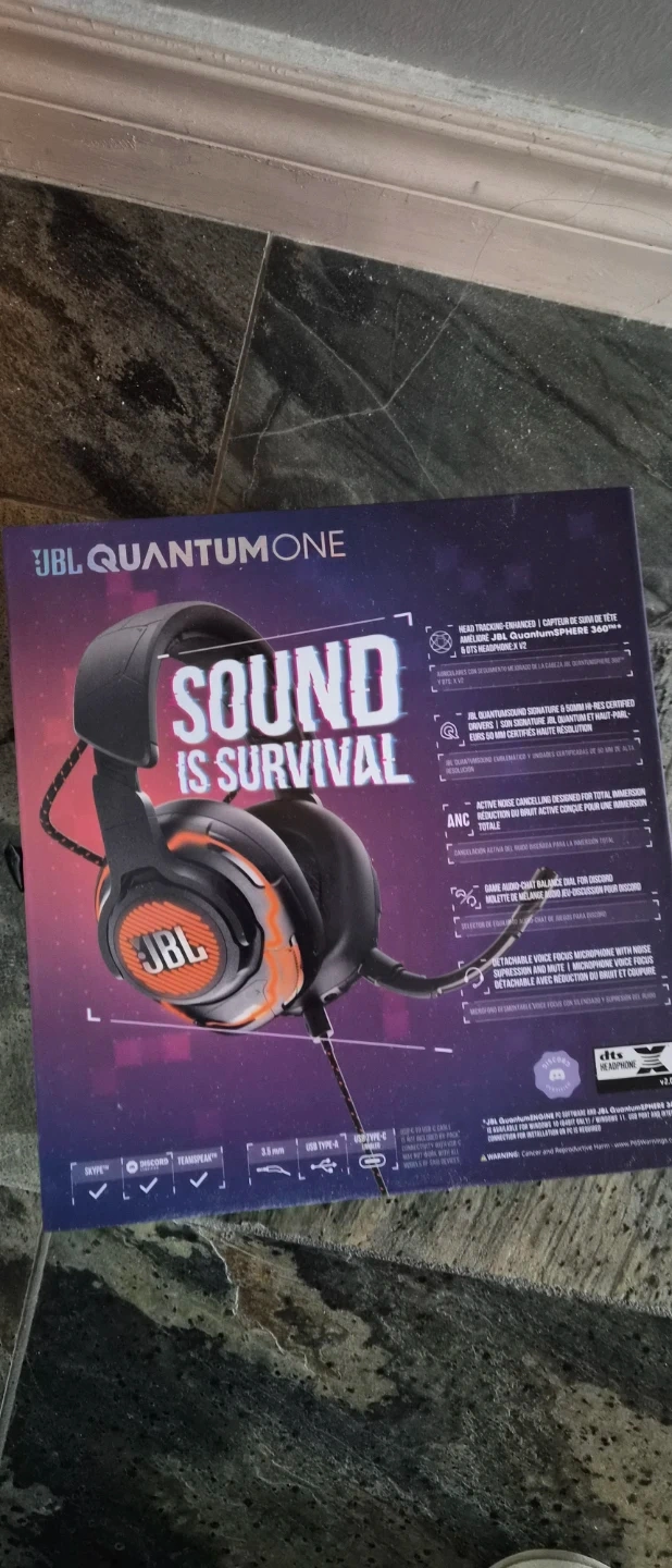 These are the JBL Quantum ONE gaming headphones. They feature active noise cancelling and JBL QuantumSPHERE 360 surround sound. Includes a detachable microphone.