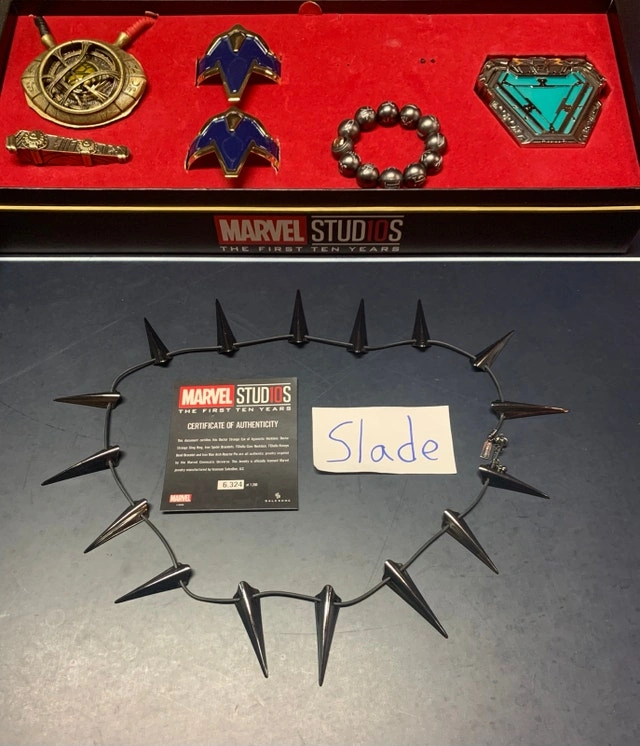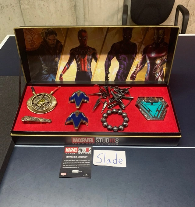 Buy & SellMarvel Studios The First 10 Years Limited BoxMarvel Studios The First 10 Years Limited Box$180Almost brand new, only used the Wakanda necklace once. No trades. Let me know if you're interested!WHERE TO MEETCheck LocationView MapSELLERSlade WilsonMarkville Mall150 reviews0 chats·0 favorites·1 viewsSEND CHAT TO SELLERHi Slade Wilson! I’m interested in your listing.Hi Slade Wilson! I’m interested in your listing.Get the Karrot app to chatSign In to chat