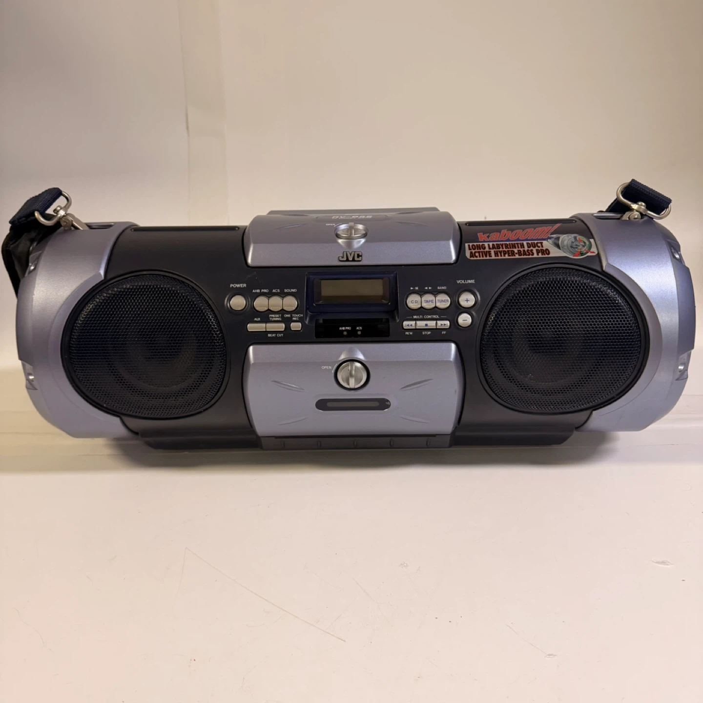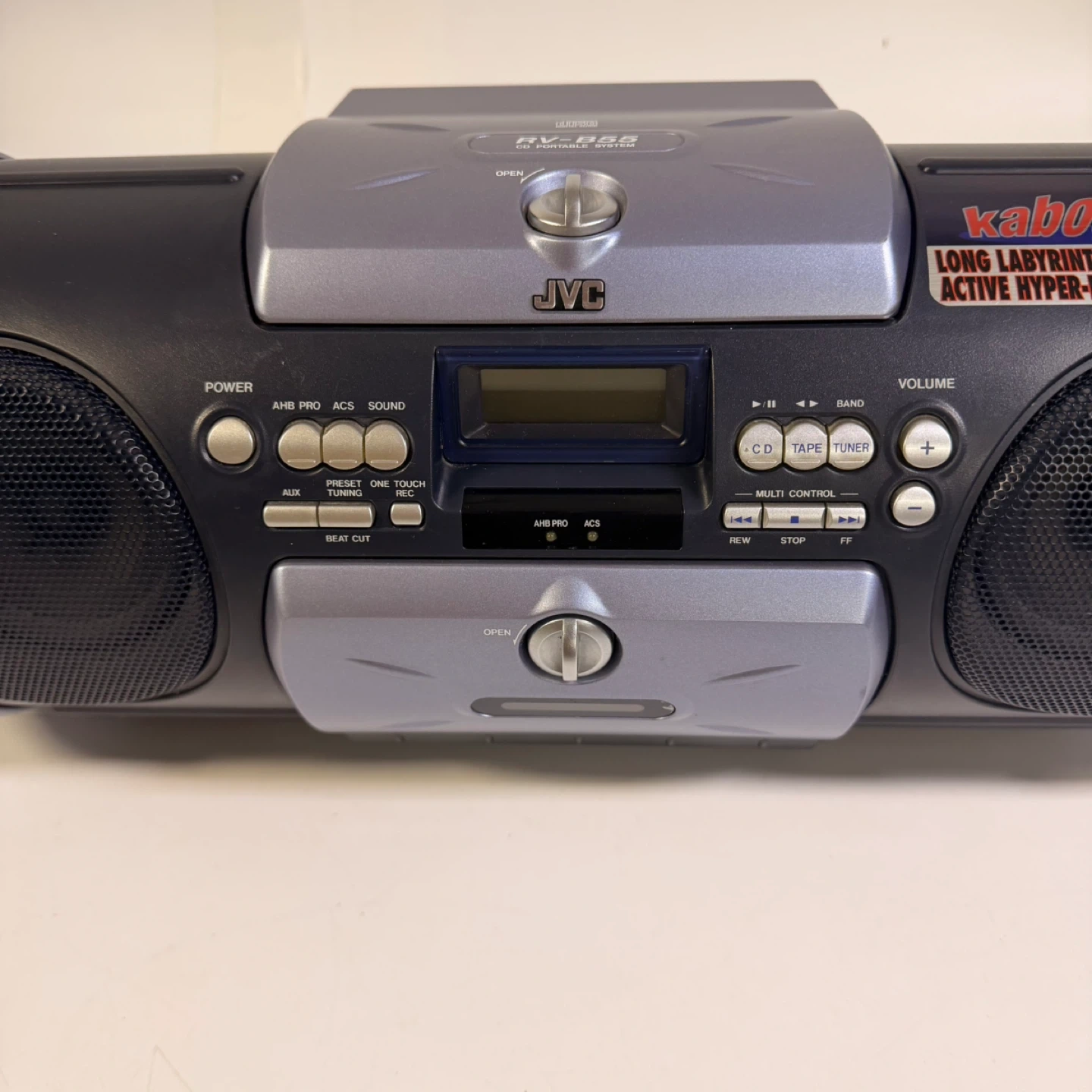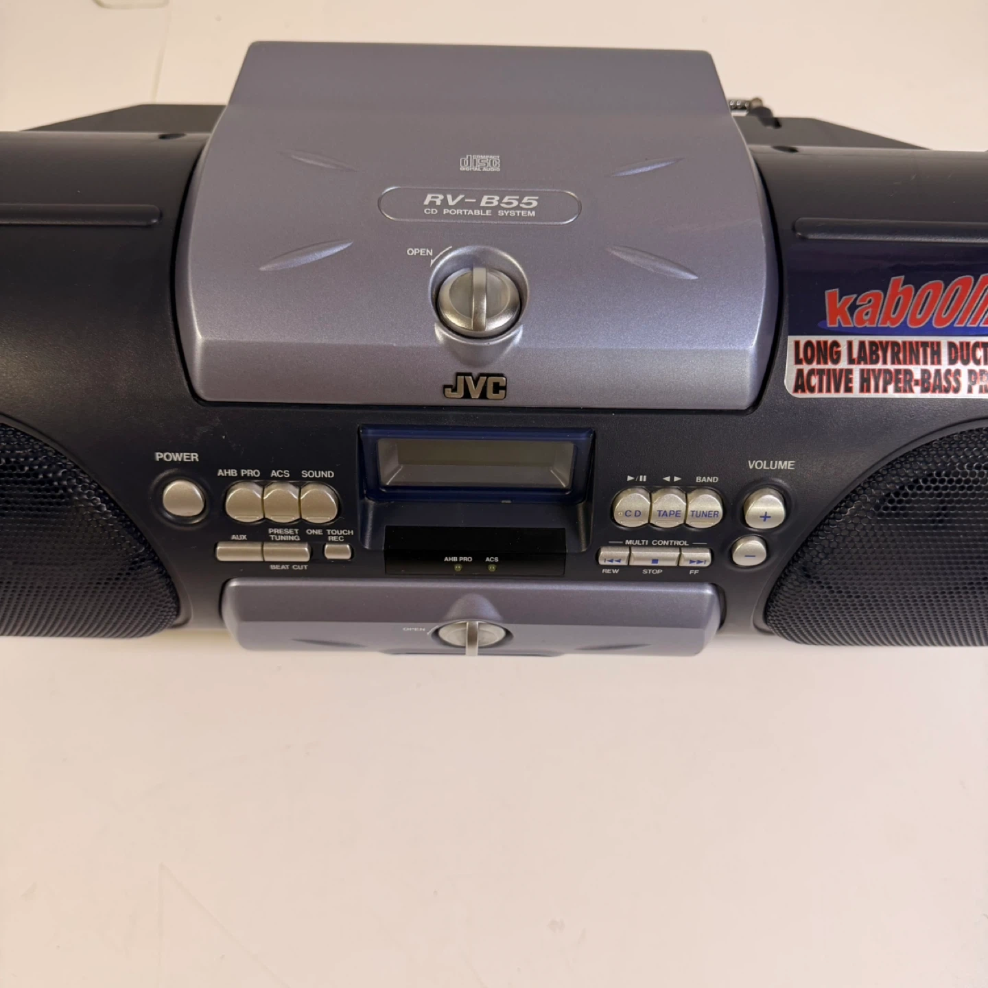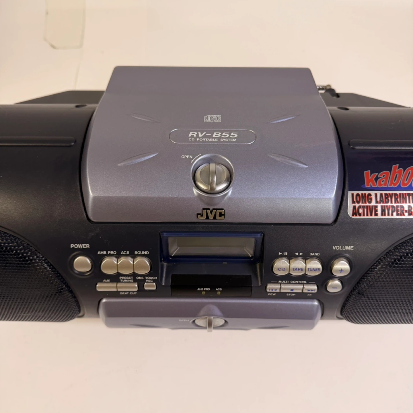 JVC Kaboom RV-B55BU portable boombox in good working condition except cassette player does not work.