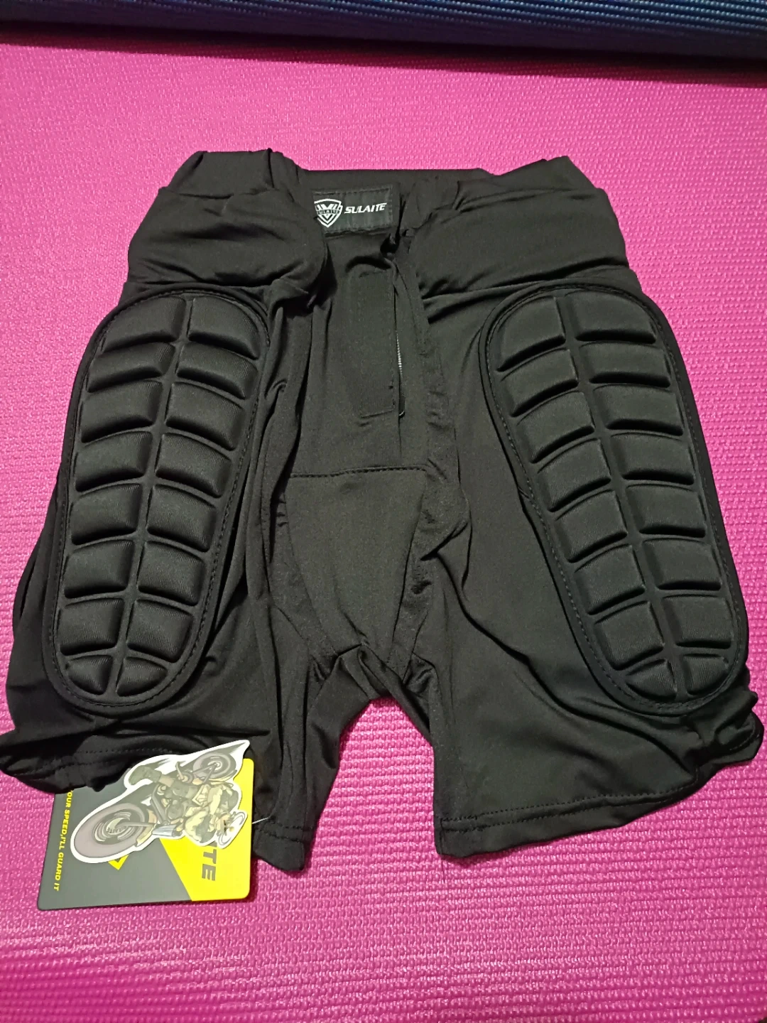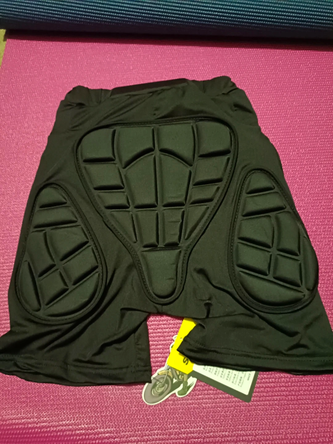 These are black padded protective shorts. They offer hip and thigh protection. The padding is strategically placed for comfort and impact absorption.