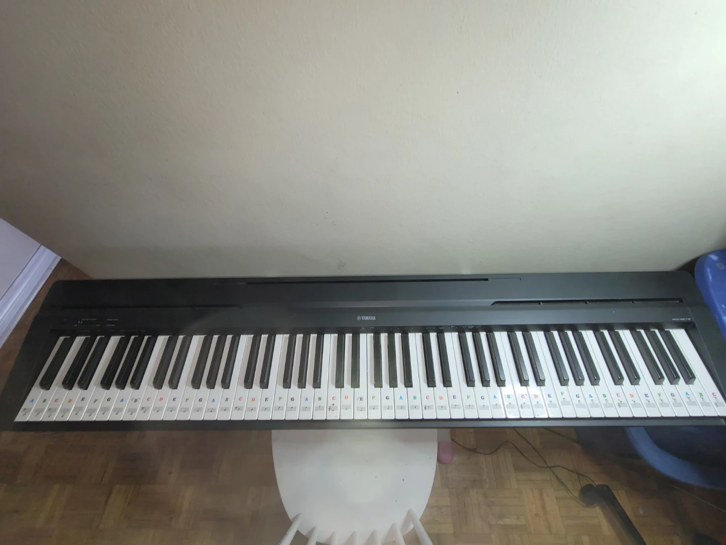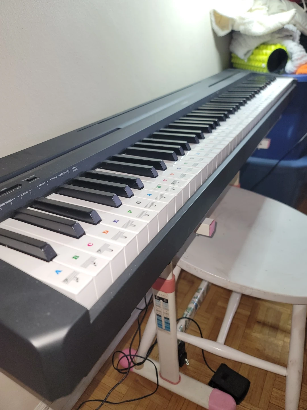 (THE LOWEST I CAN TAKE IS $370 EVERBODY ITS JUST A REMINDER!!!♡) This is a Yamaha digital piano. It features 88 keys and with note stickers on them. It's a great instrument for beginners learning to play.