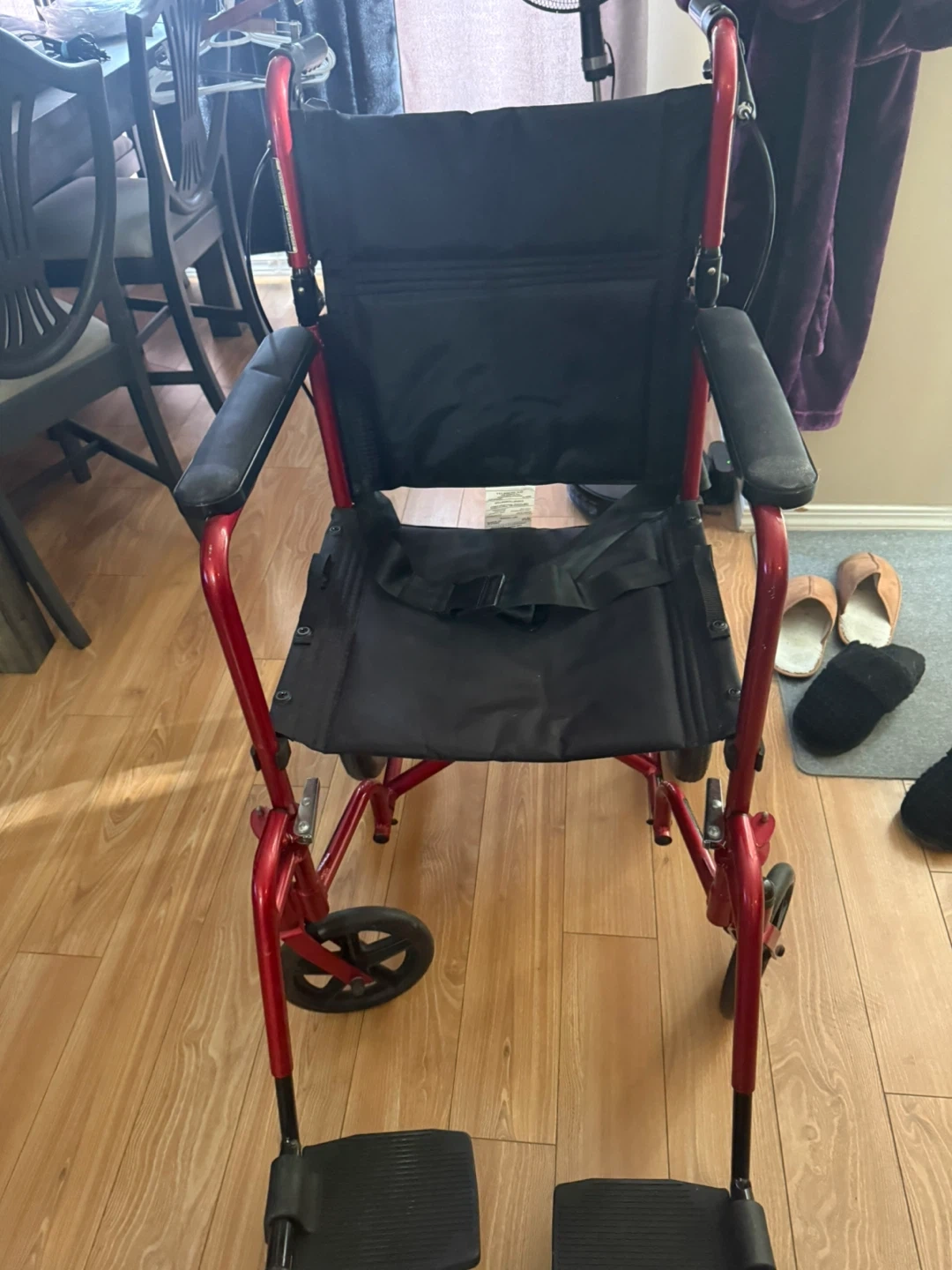 Flyweight Lightweight Transport Wheelchair with Removable Wheels, Red