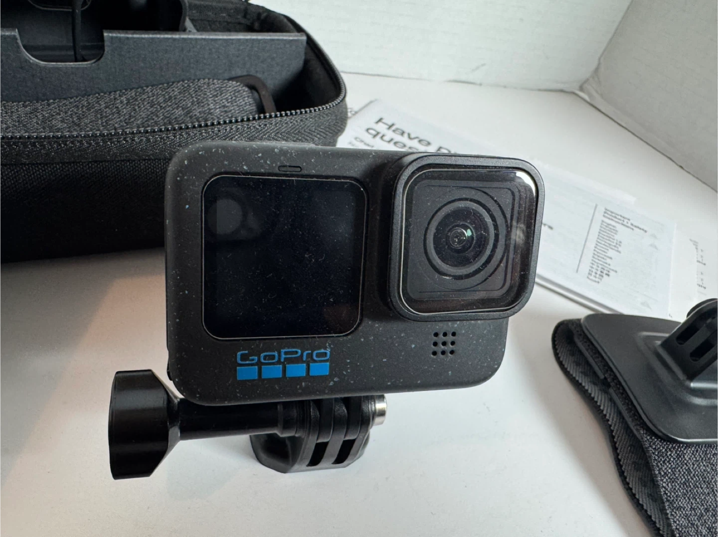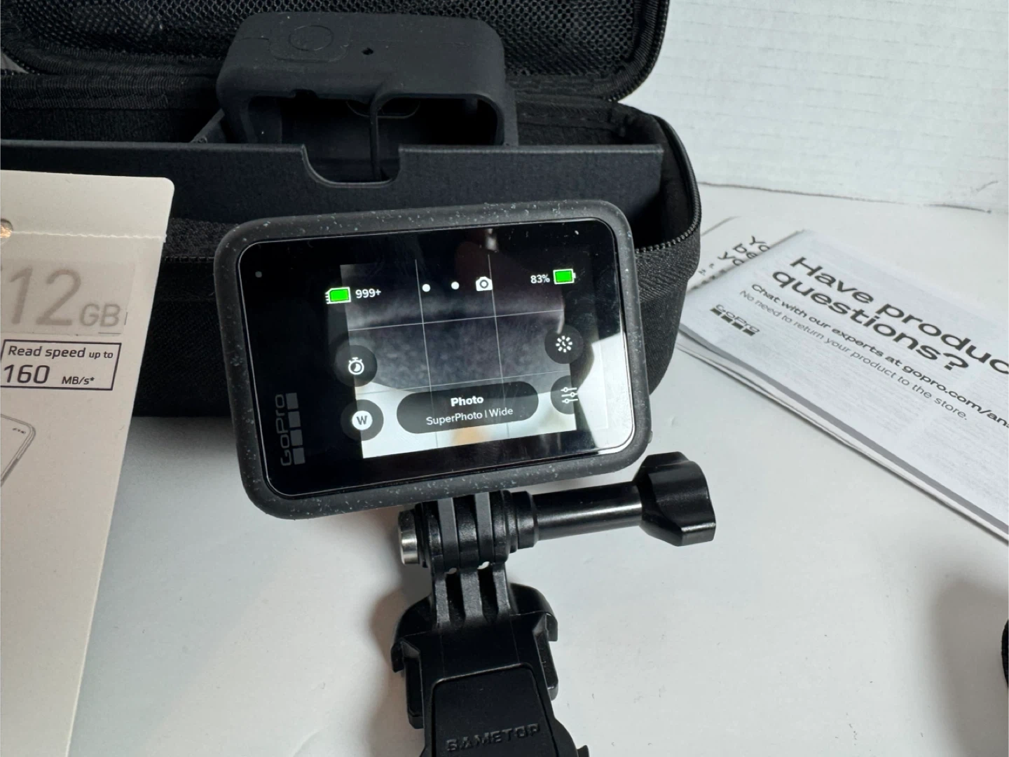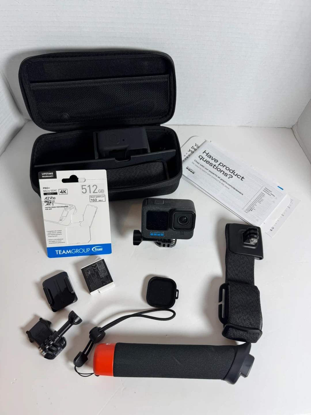 Selling a GoPro HERO12 Black action camera. It comes with a 512GB TEAMGROUP SD card and various accessories, including mounts and a carrying case. Get ready to capture all your adventures!