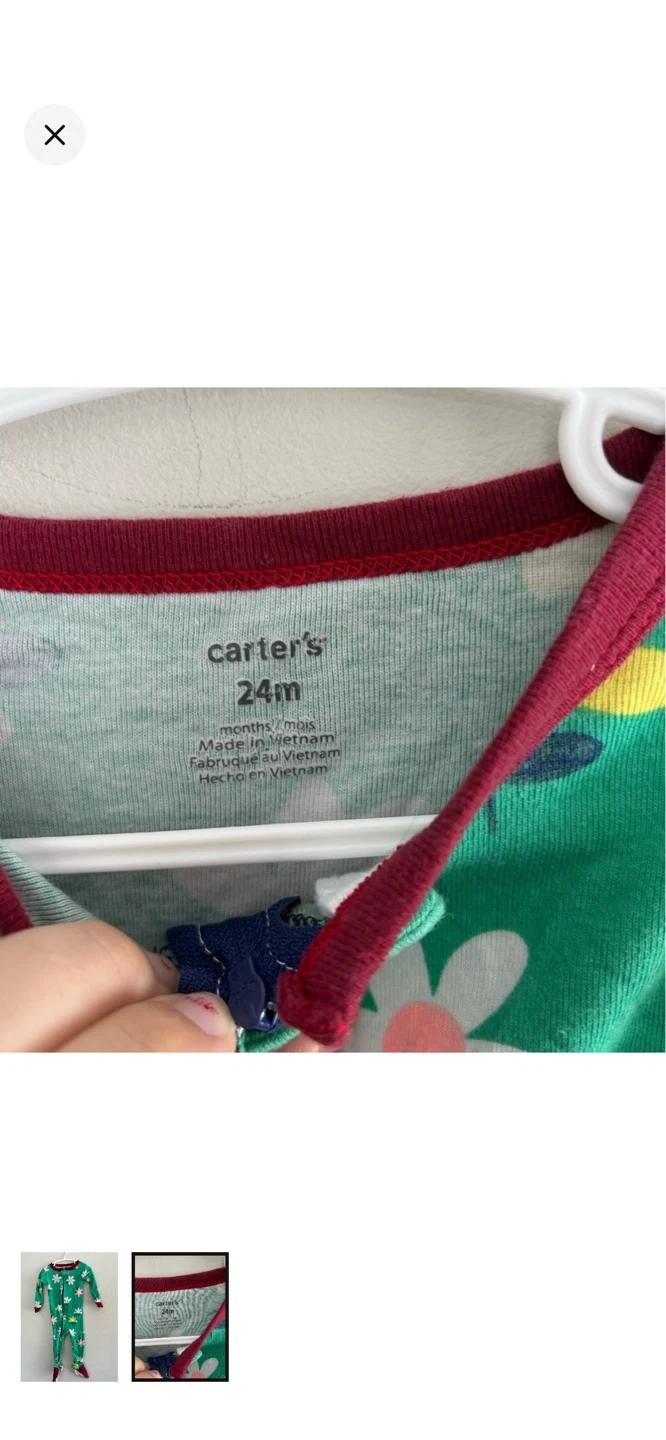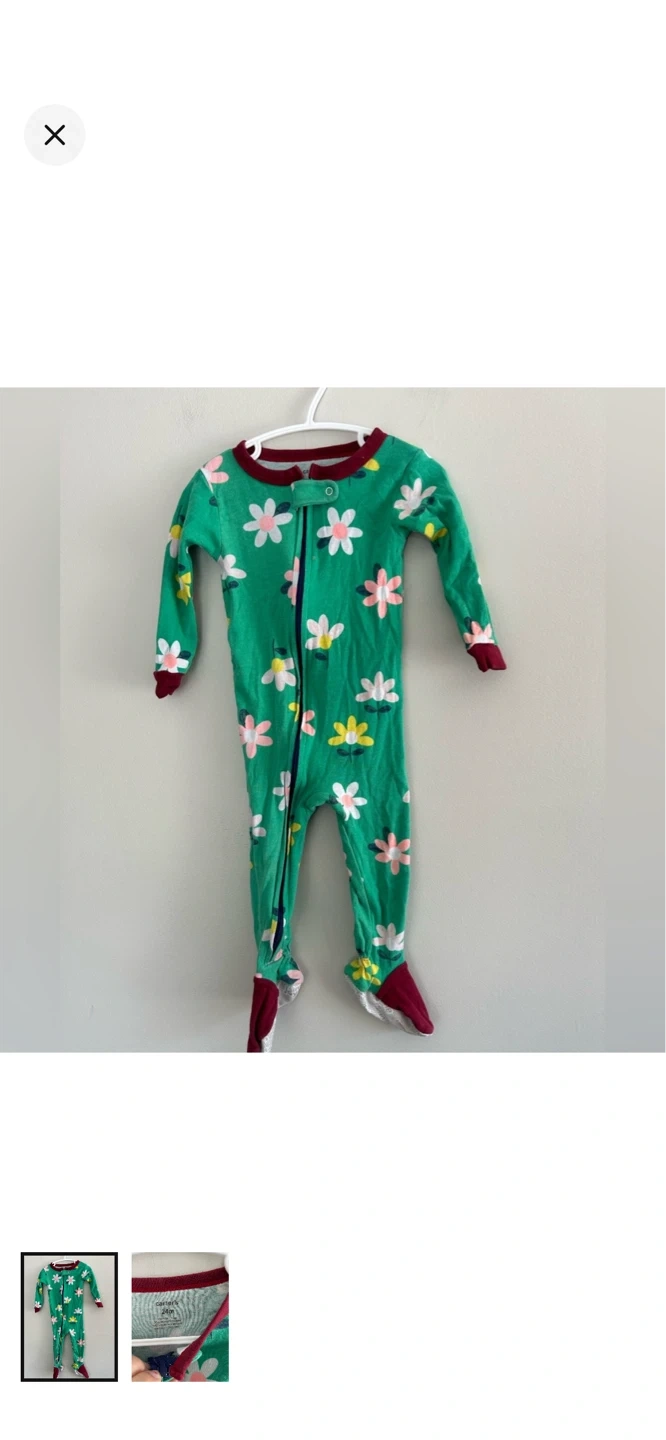 Carters brand. Zip up sleeper. Green with floral print and burgundy accents. Size 24m. Brand new condition