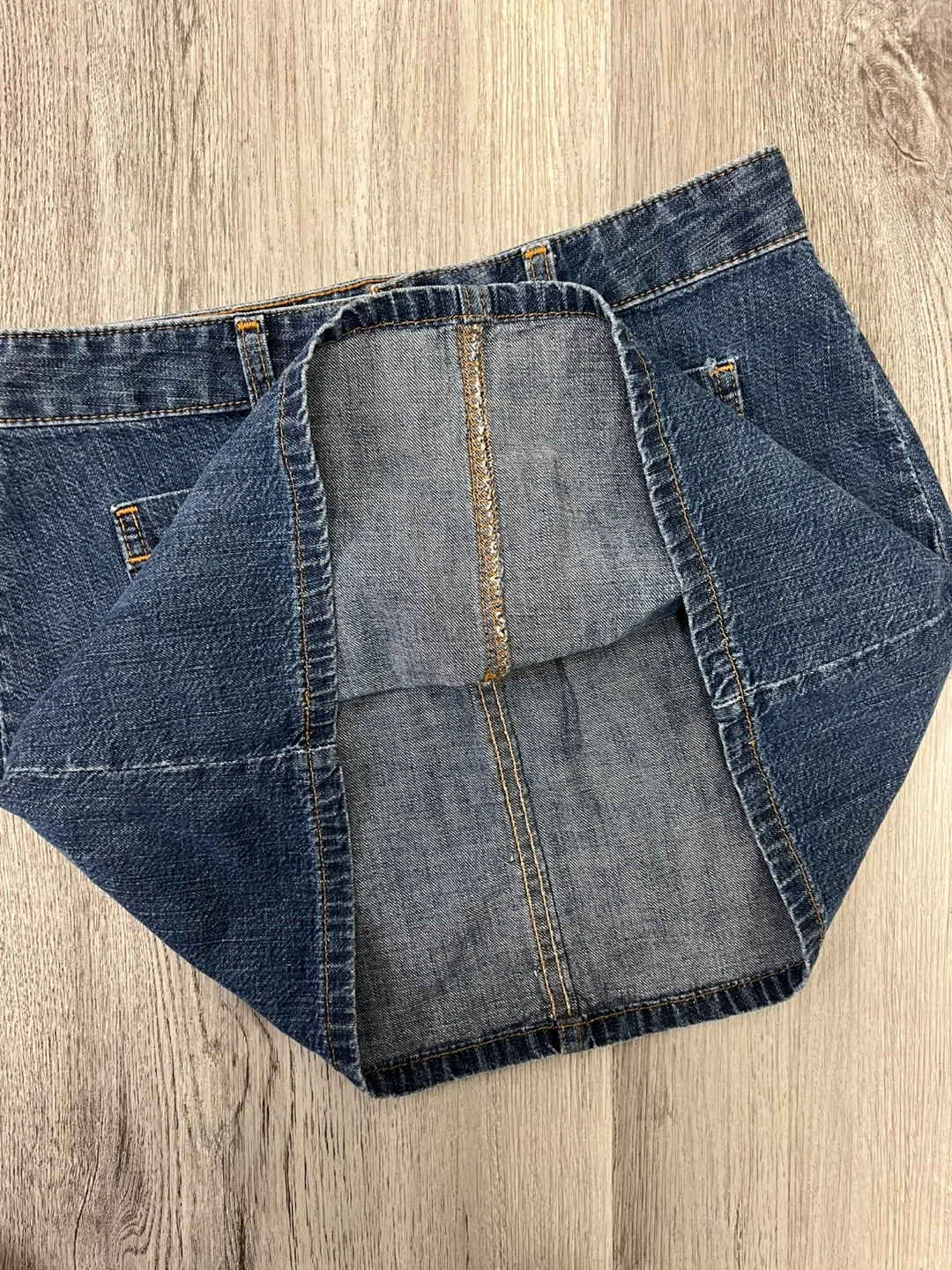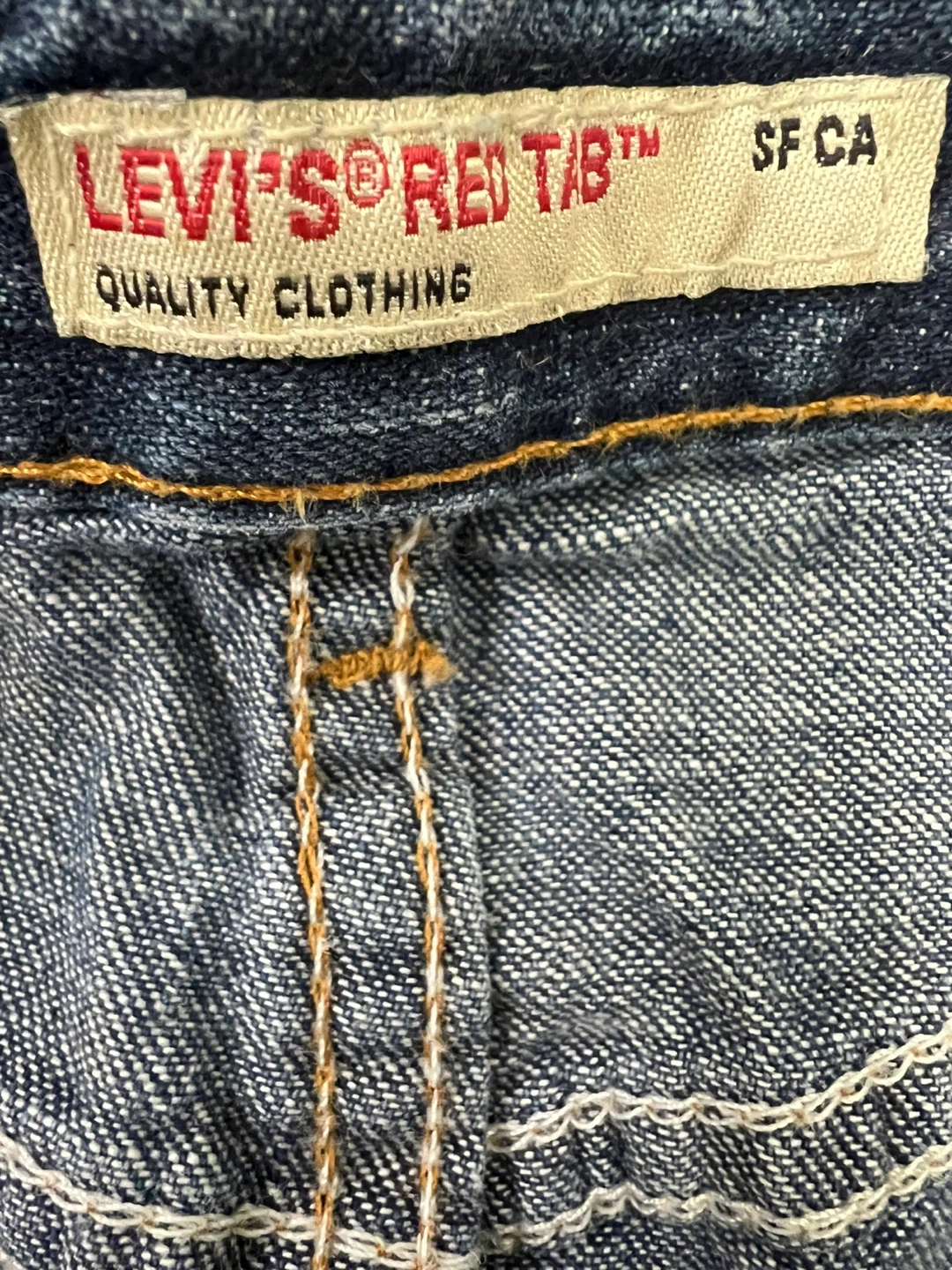 This is a Levi's Red Tab denim skirt. It's 100% cotton and made in Canada. It's a size small. This skirt's classic design makes it a versatile addition to your wardrobe!