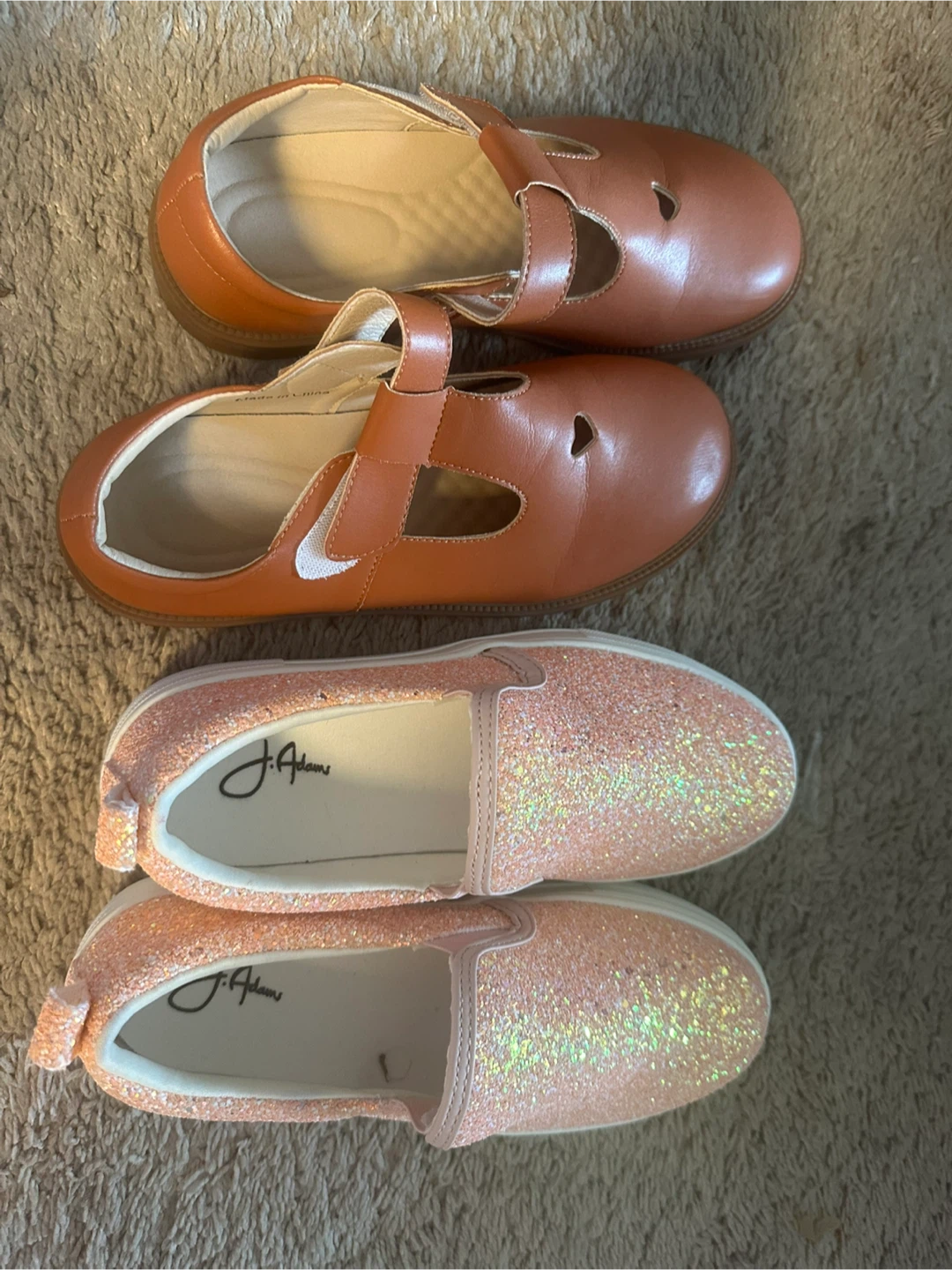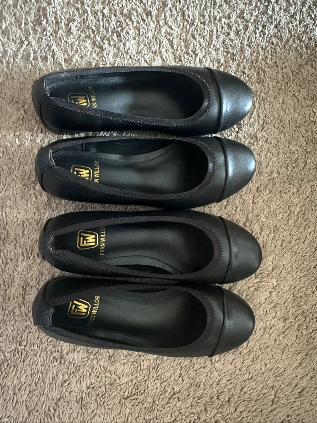Two pairs of women's flats. Includes a pair of pink glitter slip-ons from J. Adams and a pair of black ballet flats from Fran Willor.(size7)