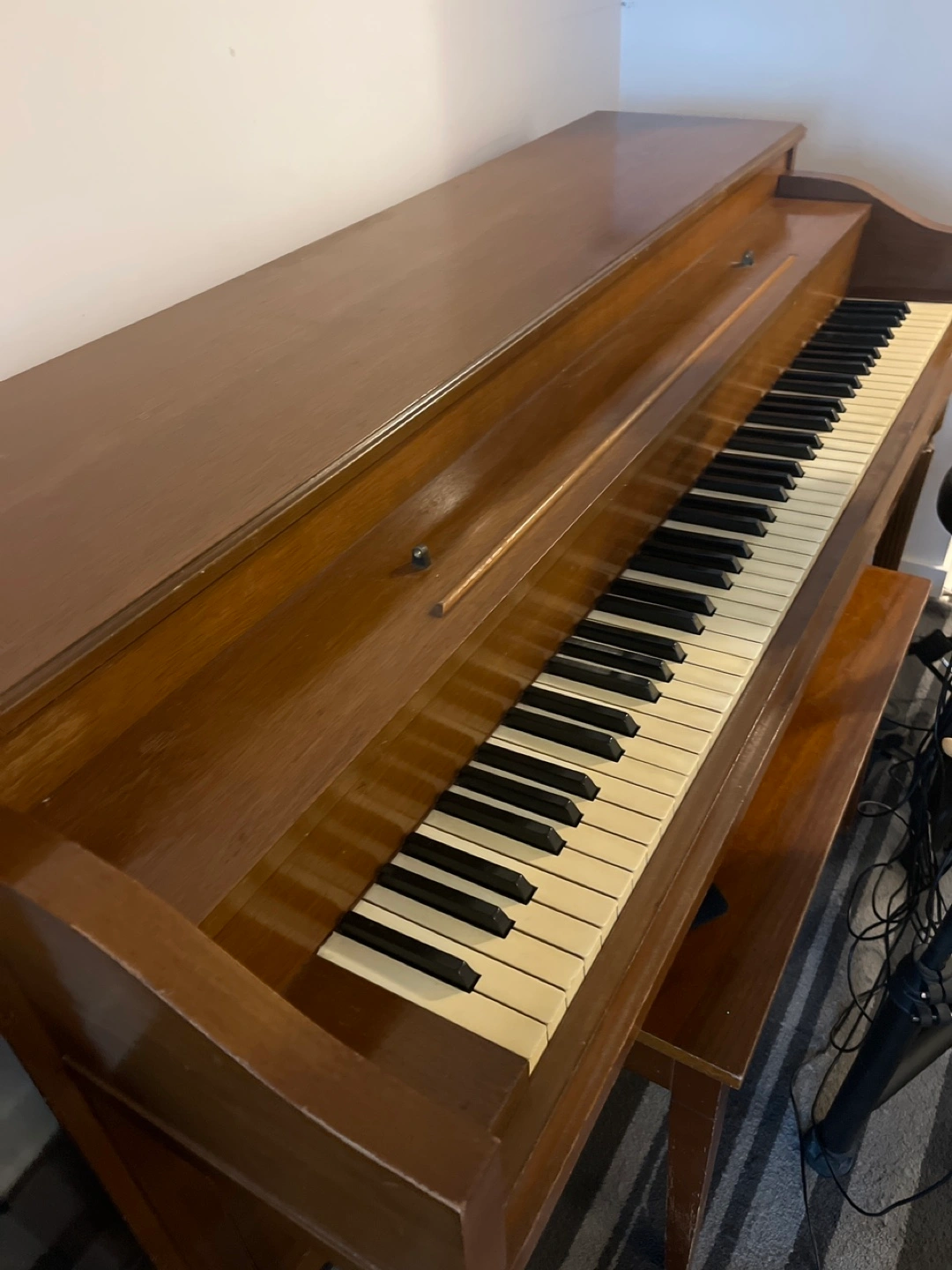 Selling a vintage upright piano. It's in good condition and has a beautiful wood finish. Perfect for someone looking for a classic instrument for their home