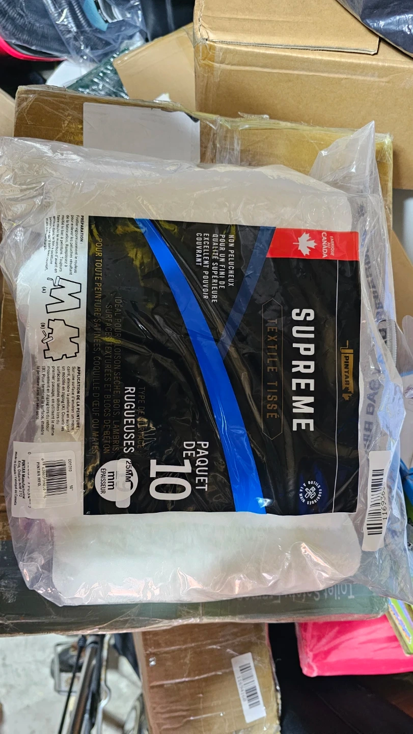 This is a 10-pack of Pintar Supreme Textile Tissé paint roller covers. They are non-pilling and designed for superior quality and excellent coverage. The roller covers are 25mm thick and ideal for rough surfaces like drywall, wood, paneling, and concrete blocks.