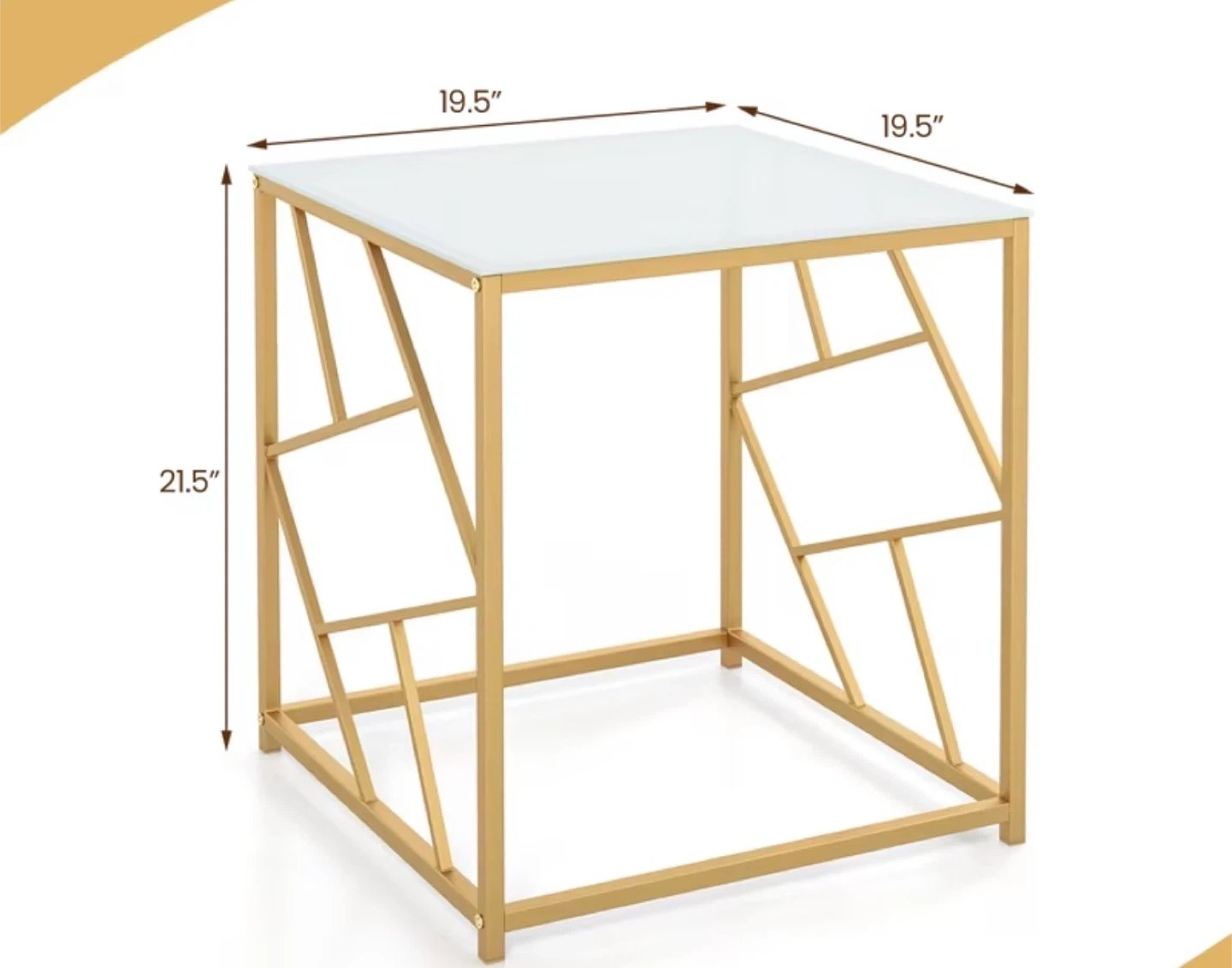 It features a beautiful gold frame with a white top, and its geometric design adds a unique flair. The dimensions are 19.5" x 19.5", with a height of 21.5".