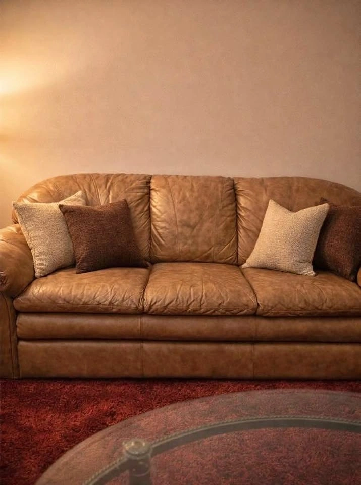 Beautiful Cozy Leather Couch – Super Comfy, Warm Tone – Great Co