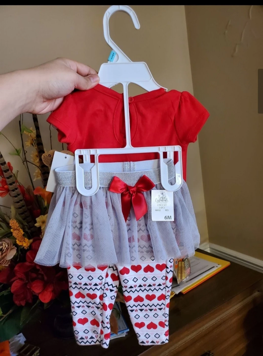 NEW WITH TAG adorable 3-piece outfit from Baby Devotion includes a red bodysuit with "Whole Lot of Love" graphic, a gray tutu skirt, and coordinating heart-print leggings. Bodysuit fabric is 60% cotton, 40% polyester. Perfect for little ones celebrating Valentine's Day or any special occasion!