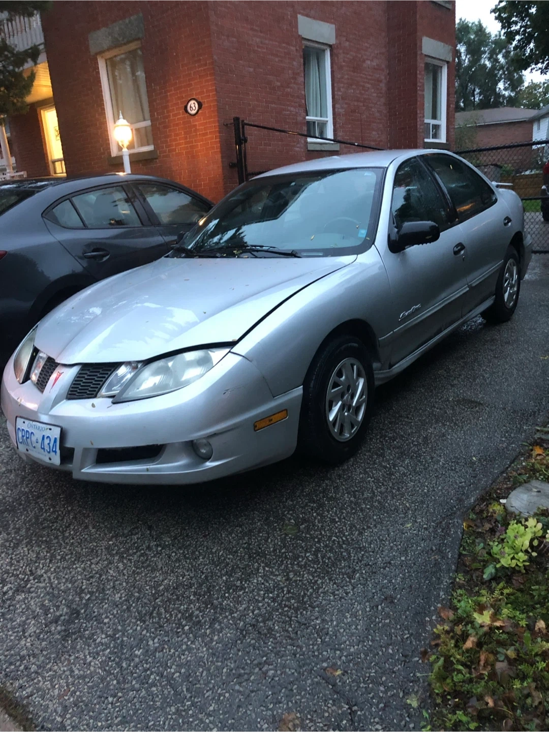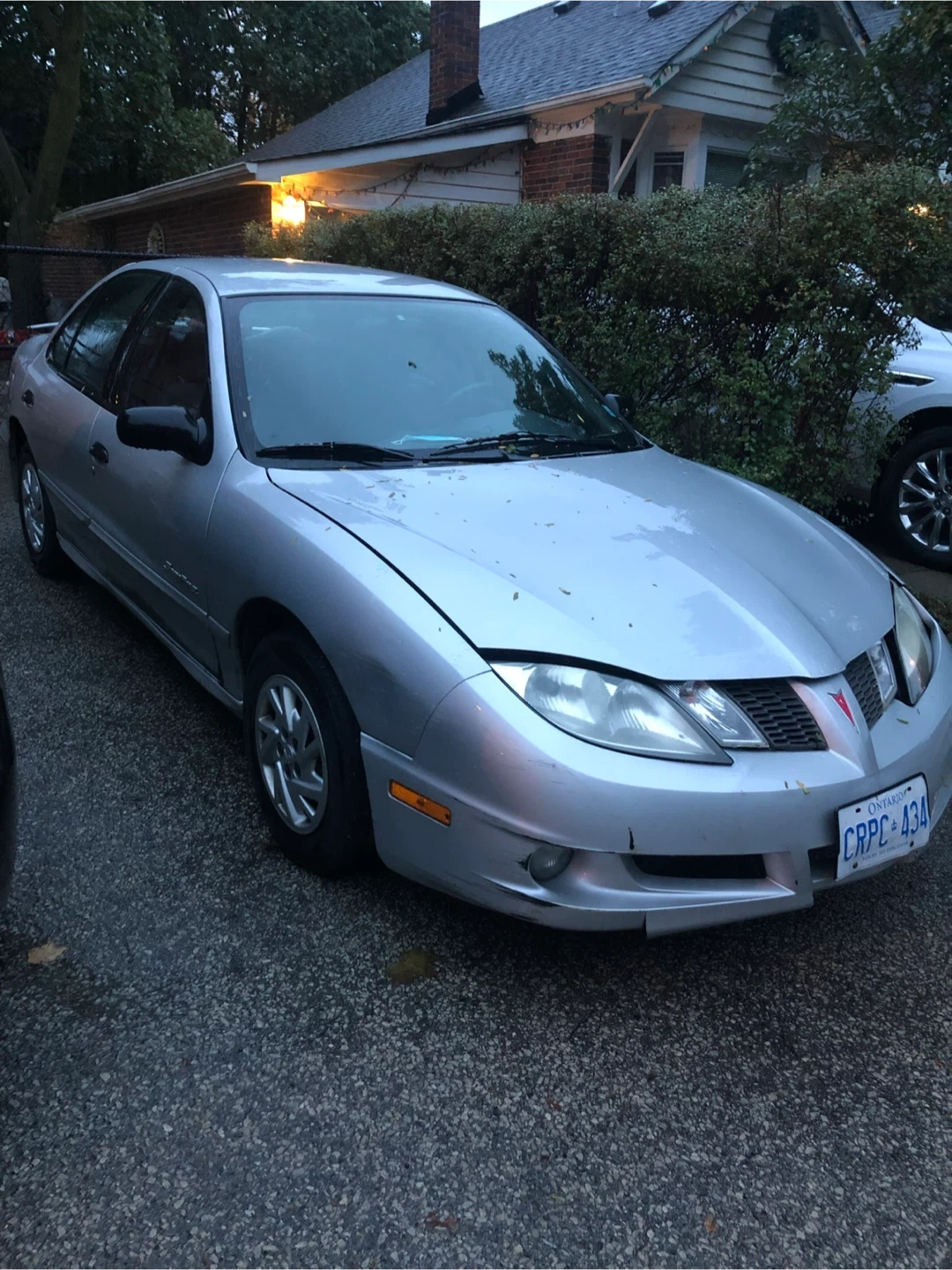 Selling 2004 Pontiac Sunfire SL, 4 door sedan. Silver color. Needs breaks and battery (since it was in storage). No rust, very clean, form no smoking home, 164k km. Only 2 owners.