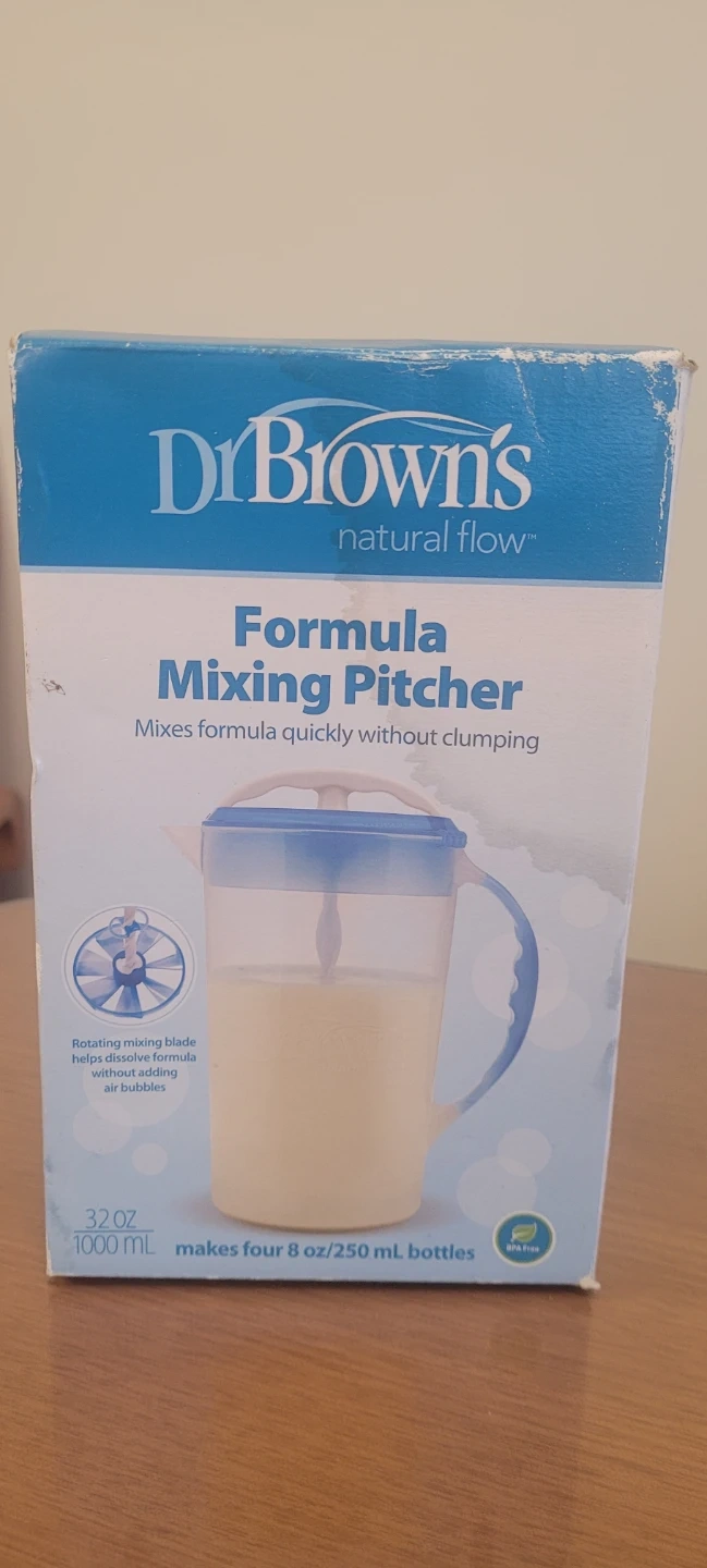Dr. Brown's Natural Flow Formula Mixing Pitcher. Mixes formula quickly without clumping. It's 32 oz/1000 mL and makes four 8 oz/250 mL bottles. BPA-free. Rotating mixing blade helps dissolve formula without adding air bubbles.