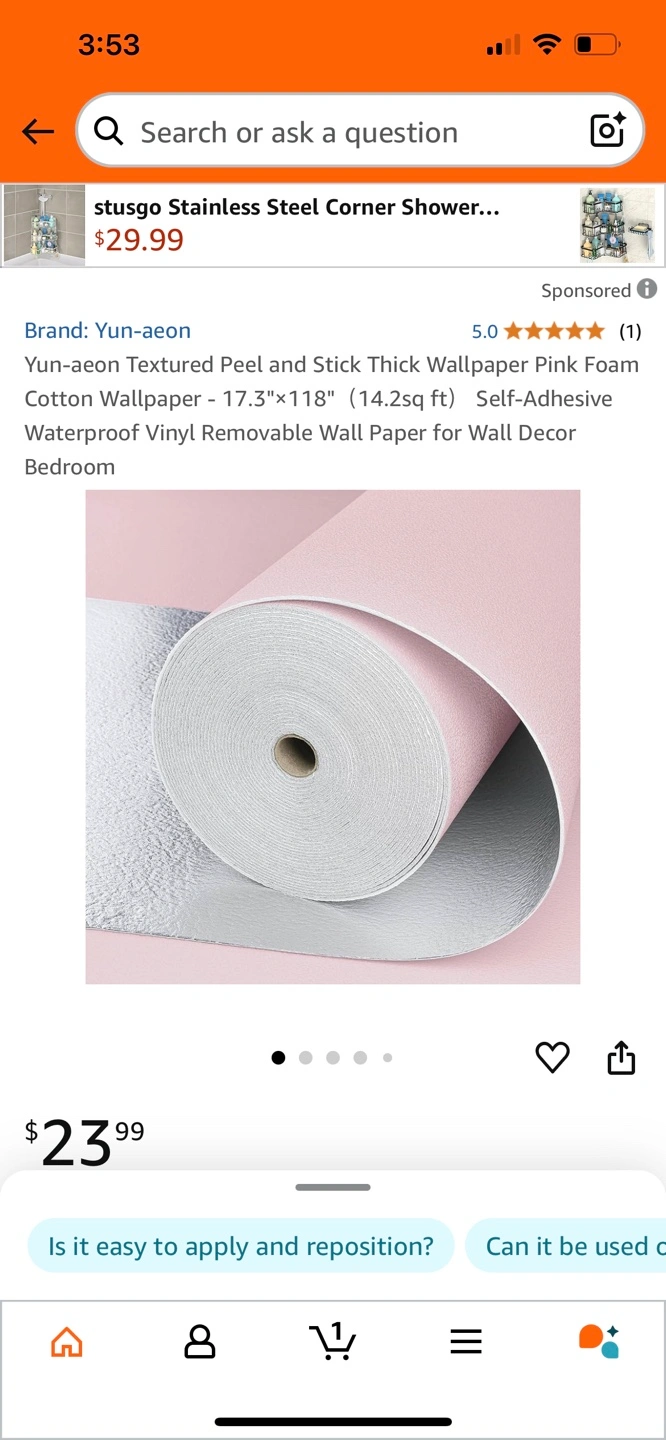 Self-adhesive waterproof vinyl removable wallpaper. Thick and solid. Sound insulation. Moisture and mold proof. Available in multiple colours. 17.3"x118" (14.2sq ft).$15 each