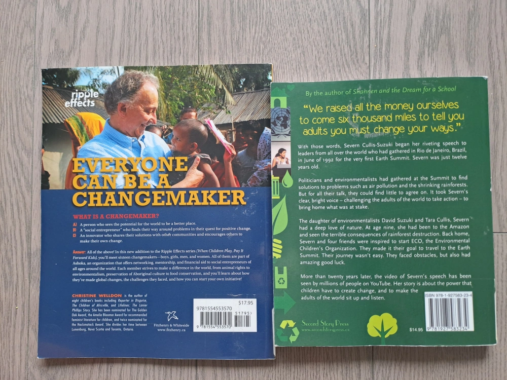 Set of two inspiring children's books. Explore stories of young changemakers. Perfect for young readers interested in social impact and environmental issues. Great condition.