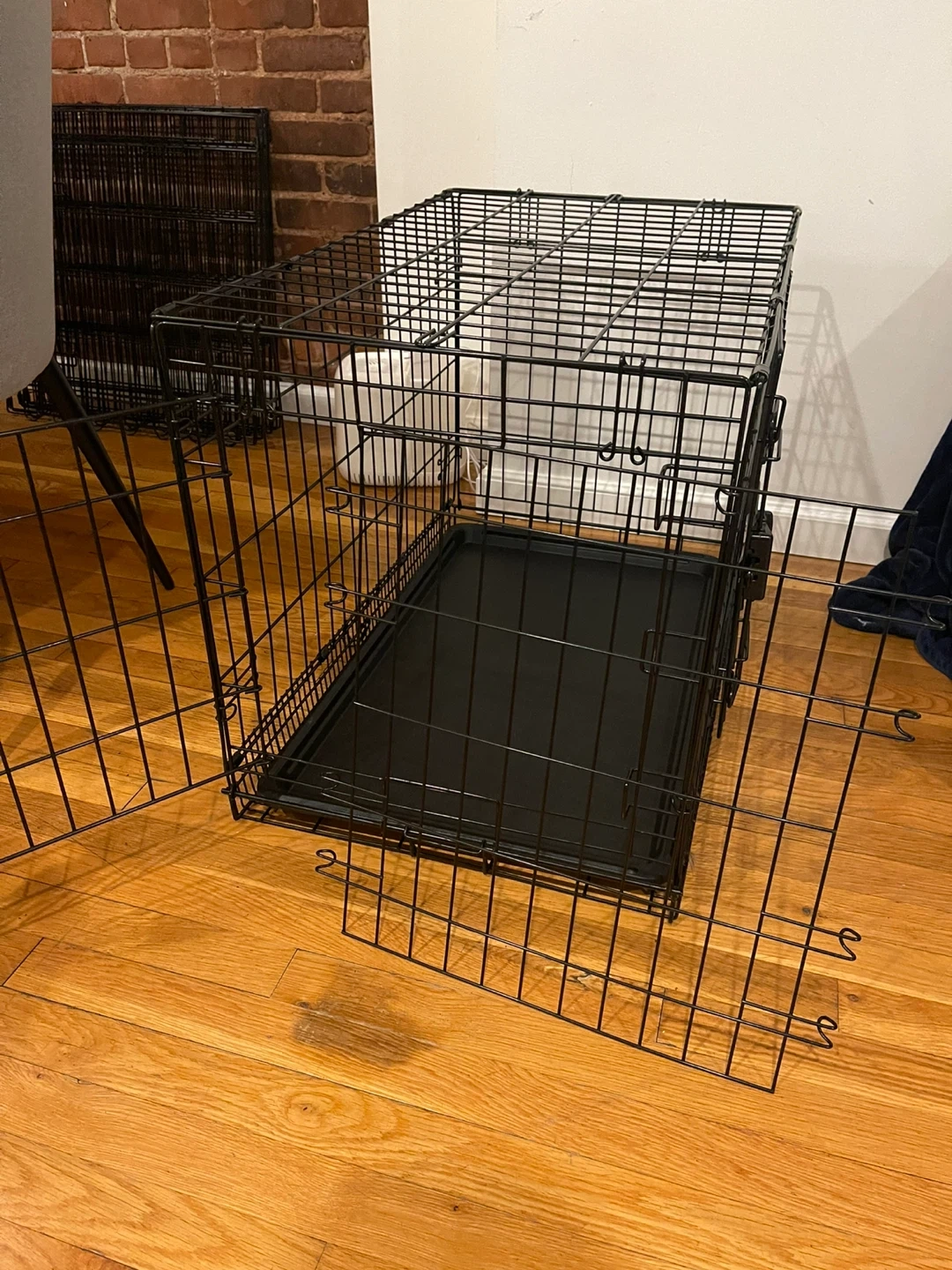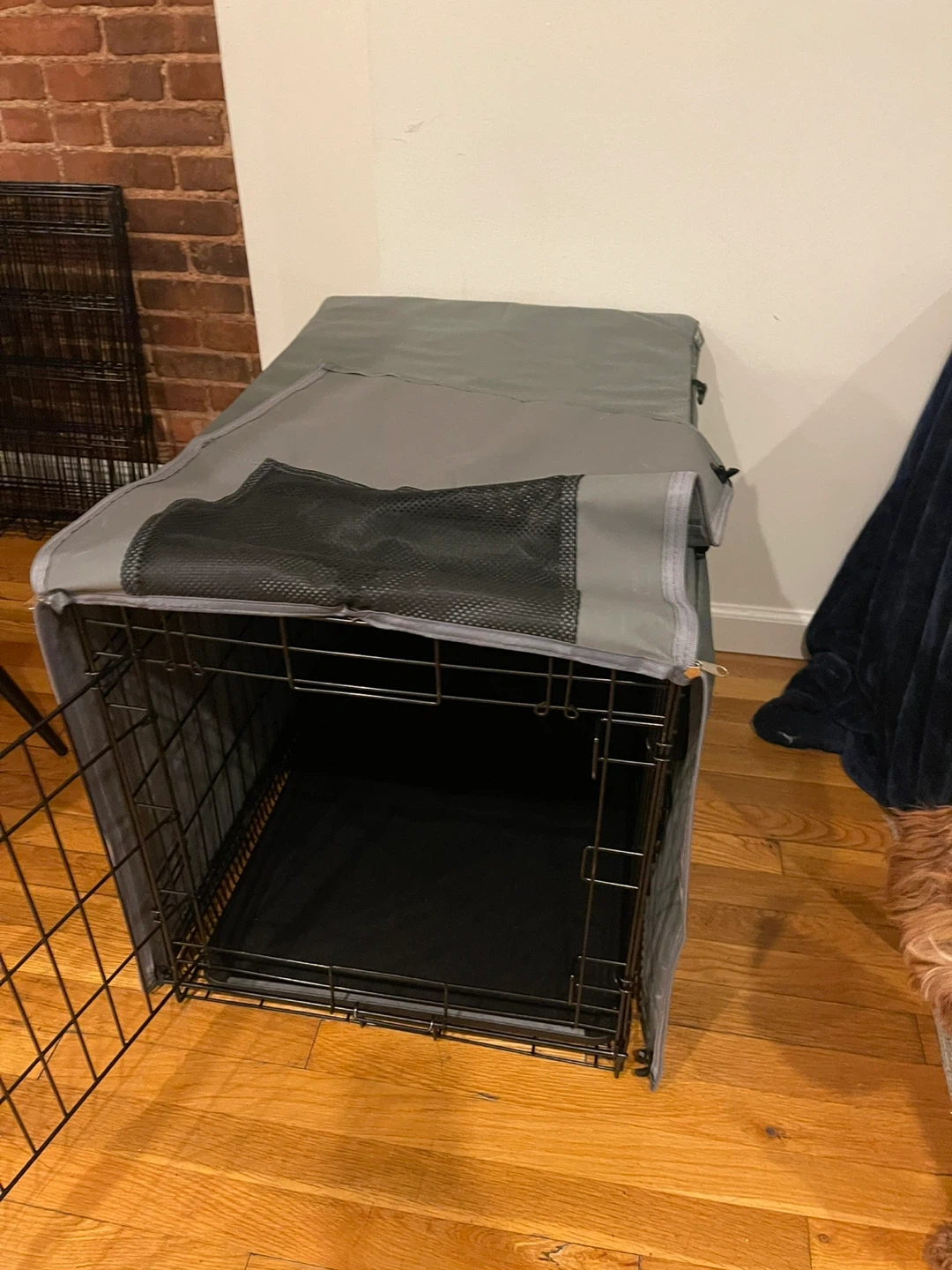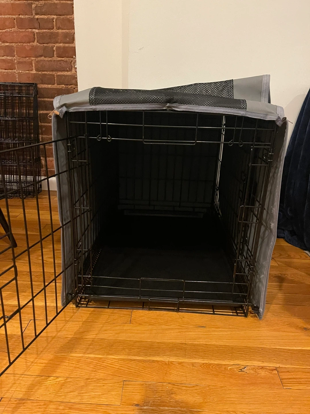 Used for 8 months with puppy and has outgrown it, everything works well and is in good condition. Comes with crate cover and the divider it was sold with.