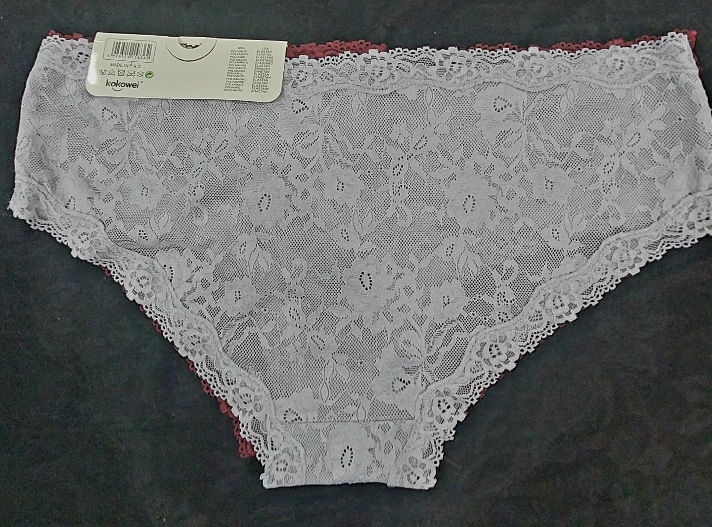 Kokowei Women's Lace Hipster Panties XL Burgundy