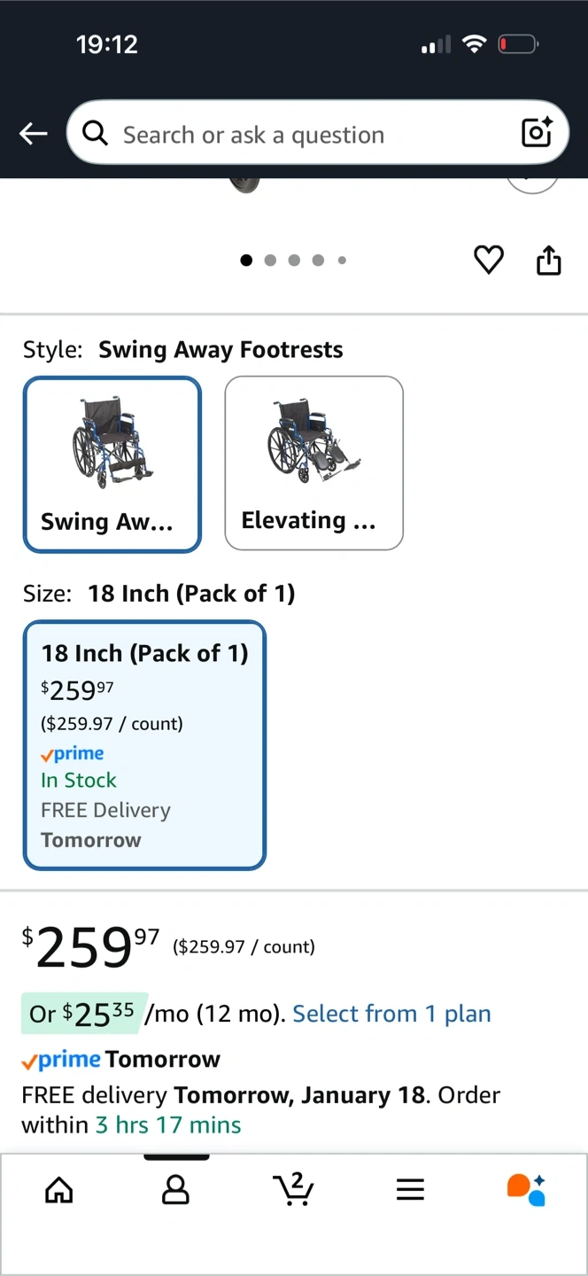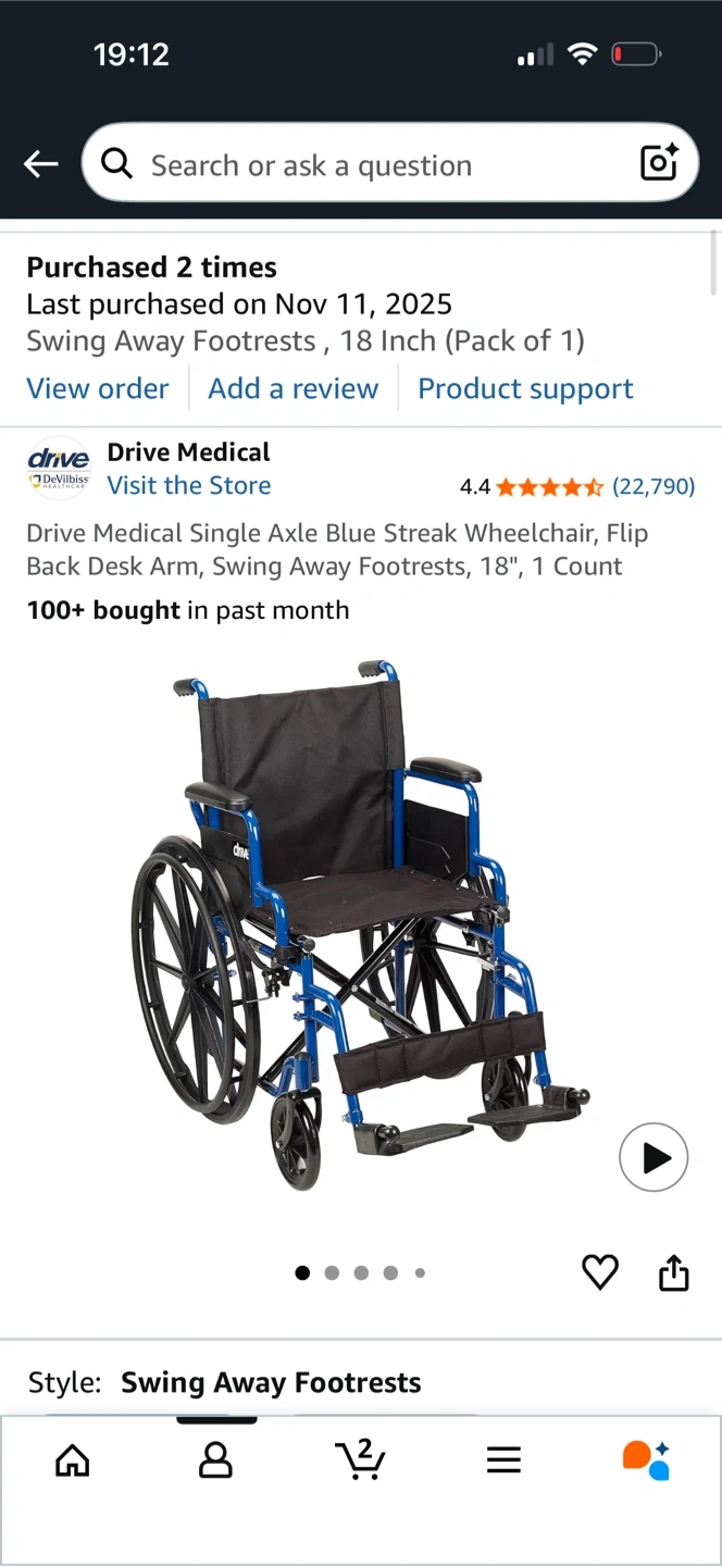 Looking to sell a Drive Medical Single Axle Blue Streak Wheelchair with Flip Back Desk Arm and Swing Away Footrests. It's an 18-inch size (Pack of 1). Originally listed for $259.97