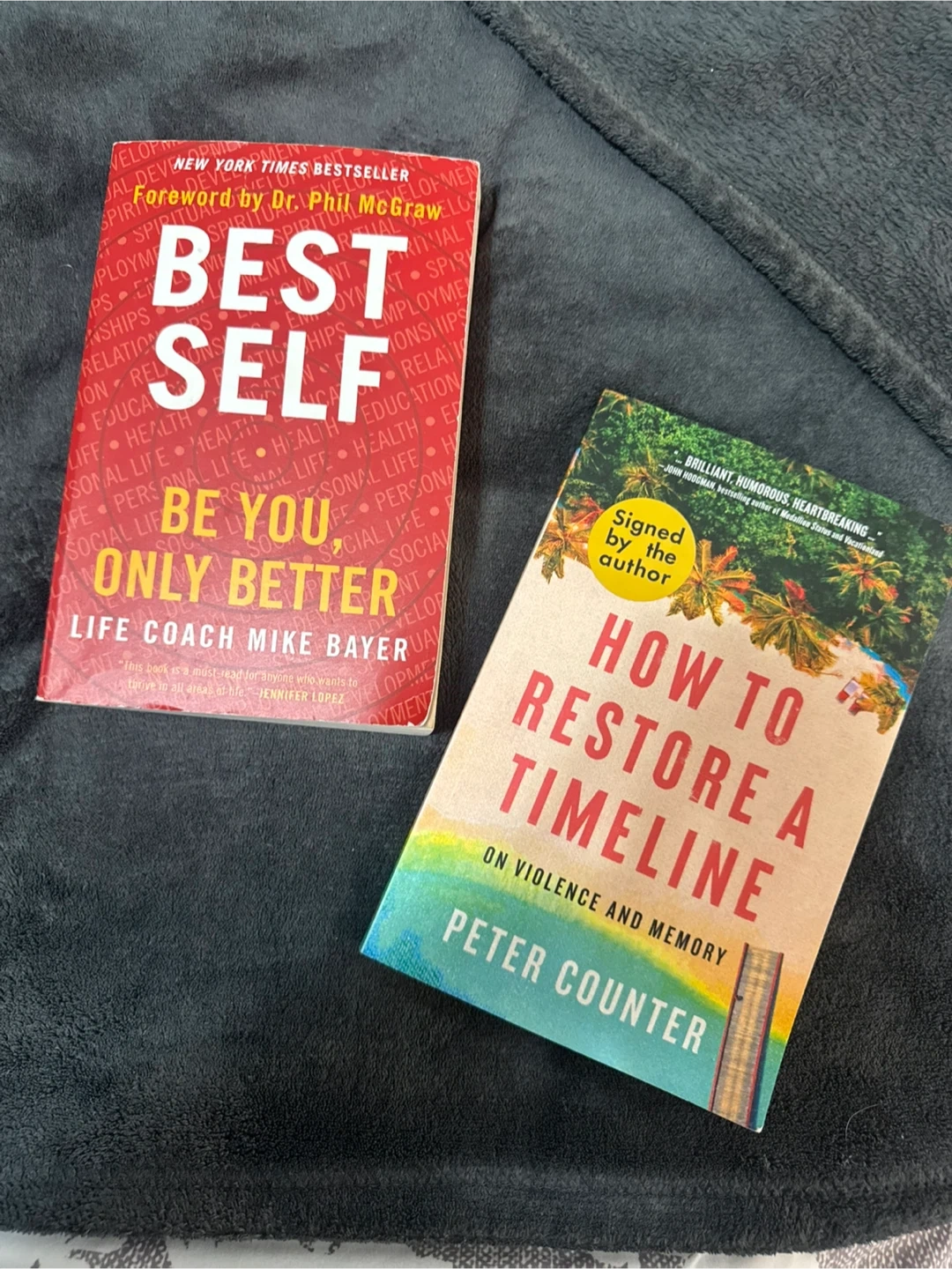 'How to Restore a Timeline' by Peter Counter is signed by the author. Both books are in good condition.