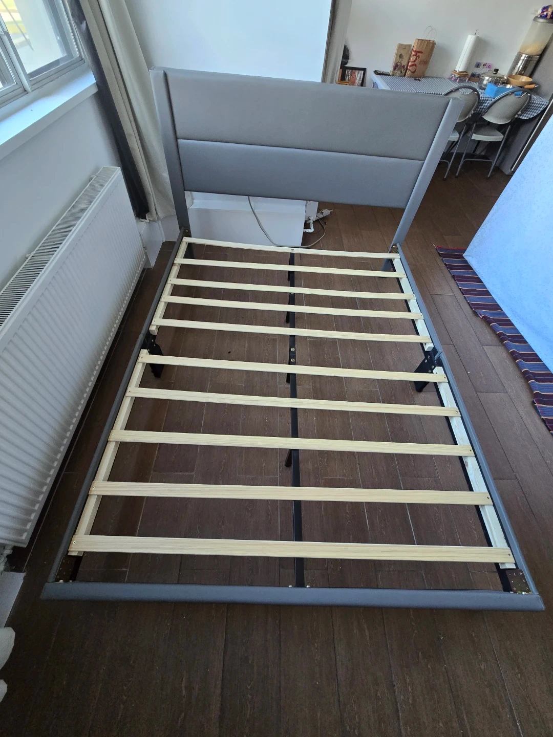 Selling a modern bed frame in excellent condition. Very sturdy and comfortable with strong wooden slats and a cushioned headboard.