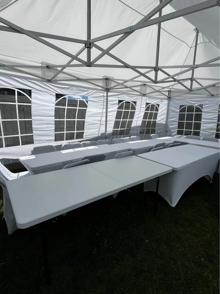 Elevate any party, wedding, or celebration with our spandex chair covers! They offer a stretchy, sleek, and professional look. Fits folding chairs only (not suitable for banquet chairs). Cleaned & sanitized after every use. Black Spandex Chair Covers – $1/day. White Spandex Chair Covers – $1.50/day. Pickup available in Edmonton, Leduc, Beaumont, Fort Saskatchewan, Sherwood Park & surrounding areas.