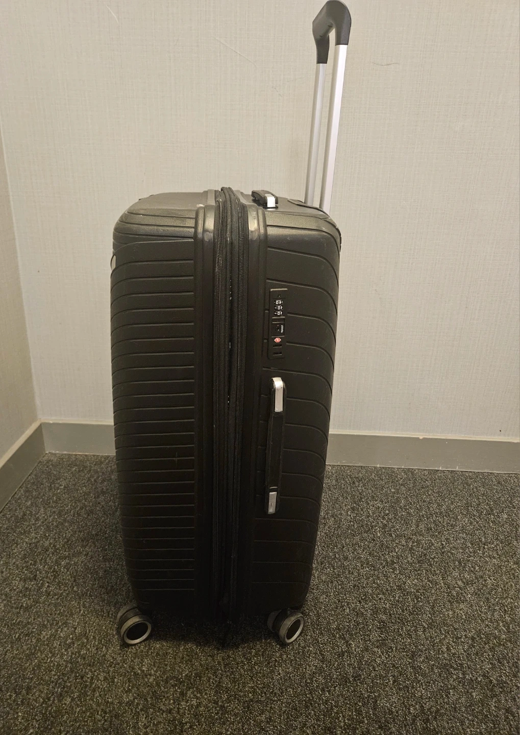 Features: Double coil tough zipper,TSA combination lock,4 silent wheels,