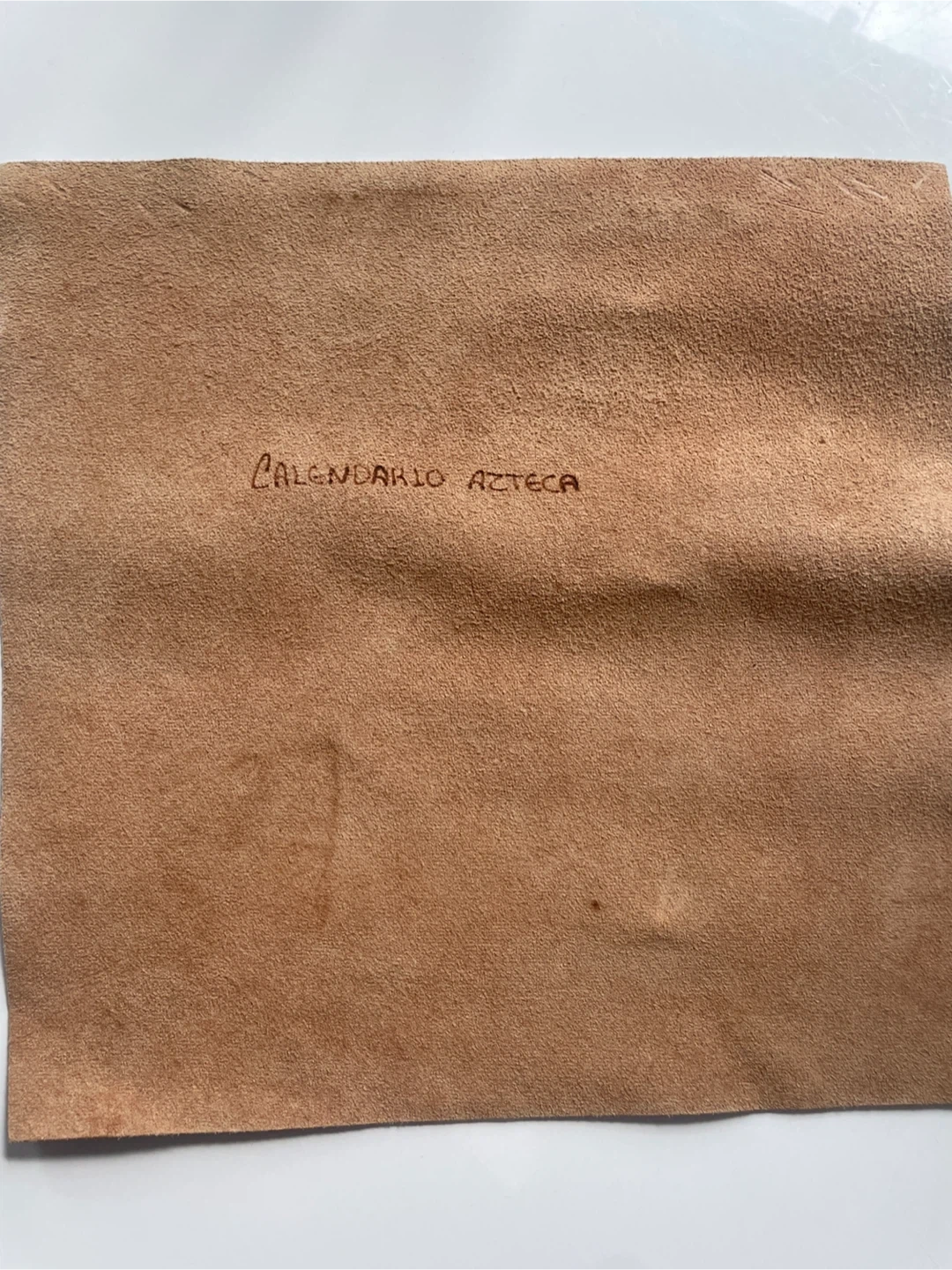 Selling an Aztec leather square. It’s the calendrical system used by the Aztecs as well as other pre-Colombian peoples of central Mexico. It has a unique design and would make a great decorative piece.