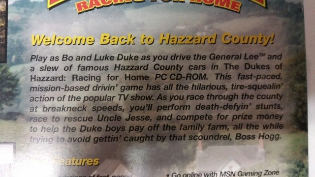 Up for sale, Dukes of Hazzard: Racing for Home (PC, 2000). The box was opened, but the game was never played and is still in mint condition. Asking $30. Thank you!